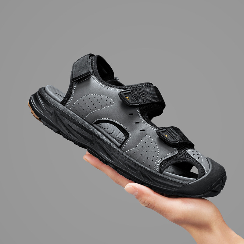 여름 패션 다재다능한 야외 비치 샌들 바오터우 캐주얼 트렌디 한국 스타일 남성 신발 벨크로 남성 샌들 운전
