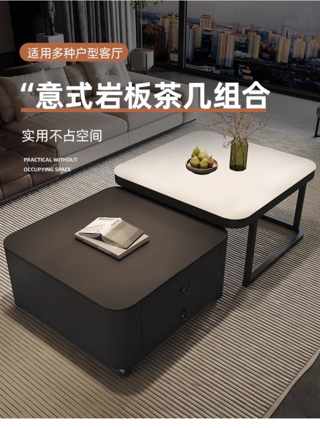 커피 테이블 이탈리아 스타일의 가벼운 럭셔리 스타일 현대적인 간단한 사각형 거실 홈 작은 아파트 새로운 슬레이트 커피 테이블 인터넷 연예인 조합