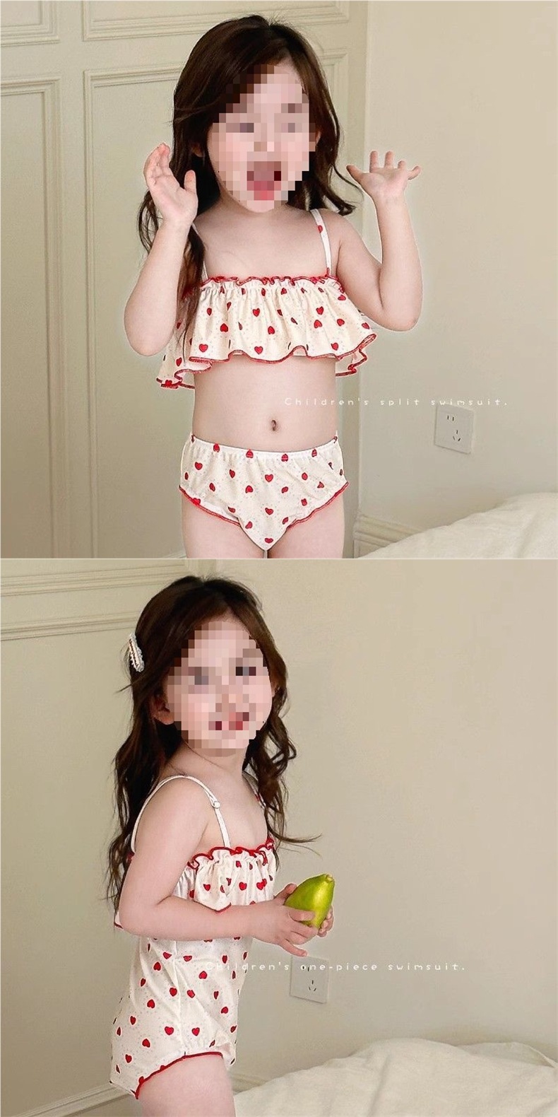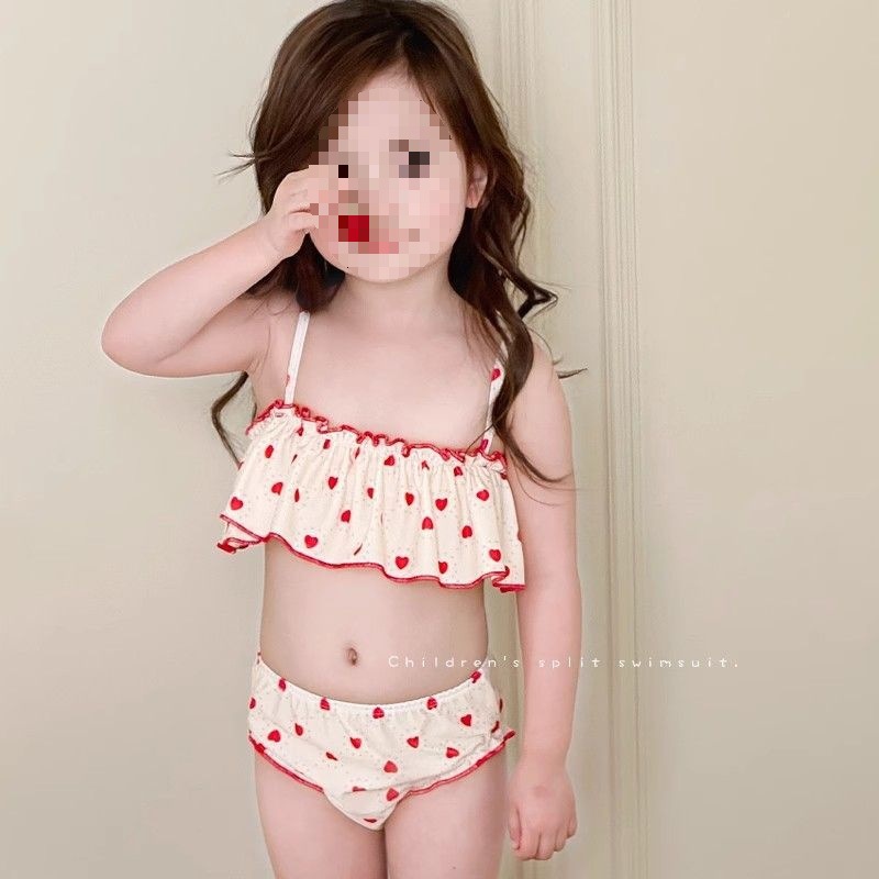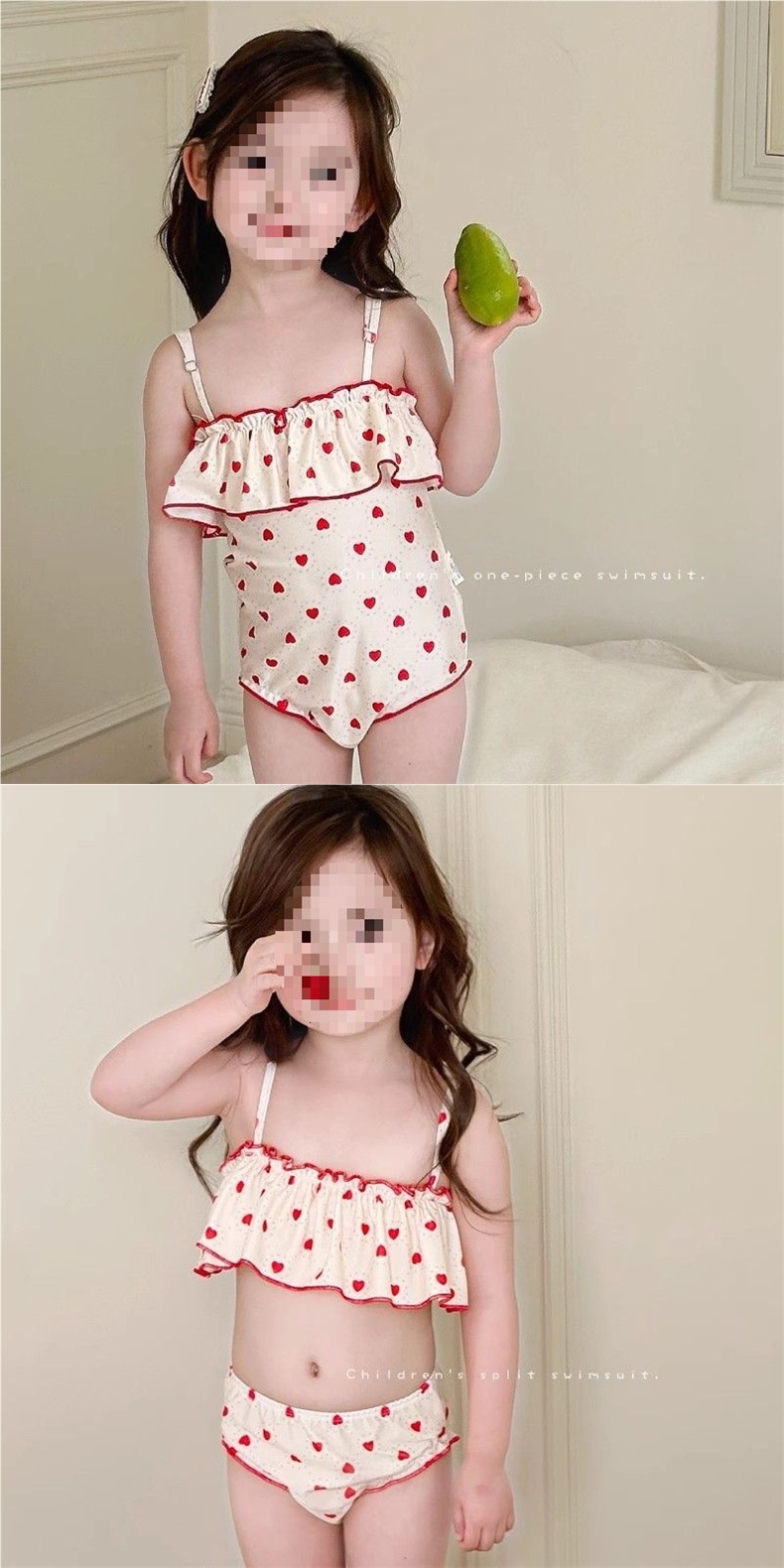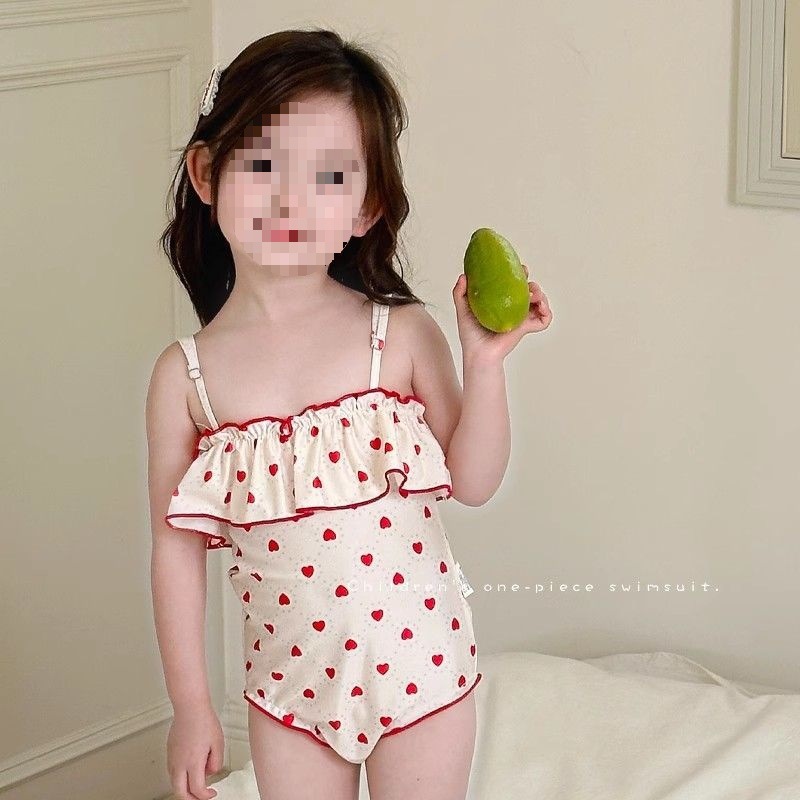 한국 스타일 아기 수영복 25 새로운 스타일 소녀 휴가 스타일 속건성 서스펜더 점프 슈트 어린이 사랑 인쇄 수영복 트렌드스토어 가기