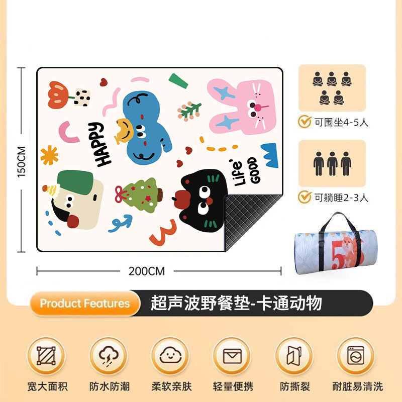 • 초음파 피크닉 매트 - 만화 동물