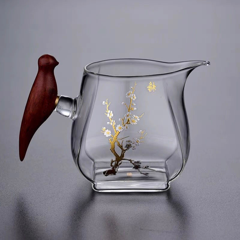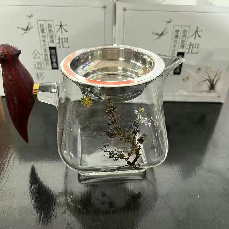 공정컵, 나무손잡이, 유리컵, 나무손잡이, 찻주전자, 순수 수제, 투명, 내열성, 두꺼운 측면손잡이, 공정컵