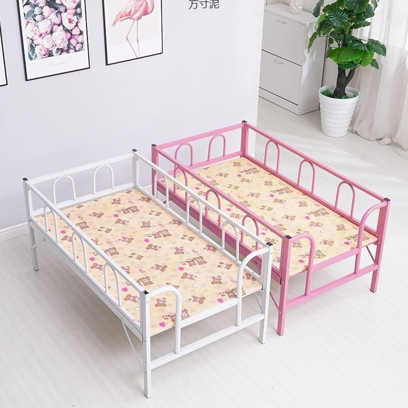 가드레일이 있는 어린이 접이식 침대 소년 소녀 공주 침대 아기 확장 싱글 접합 철제 침대 간단한 침대 옆 침대