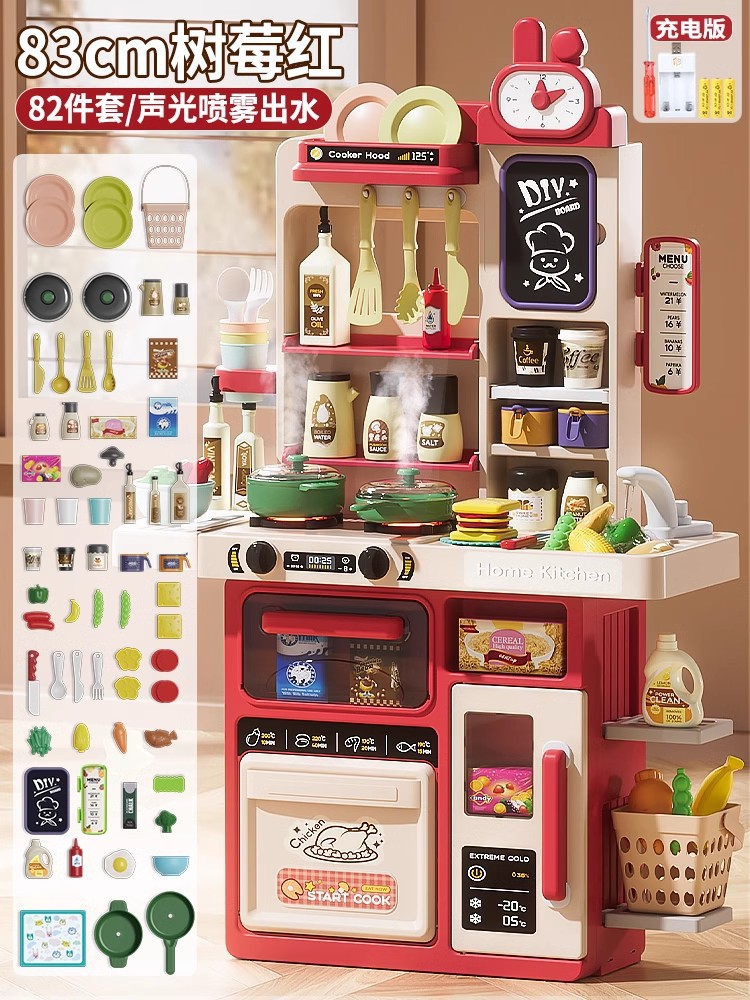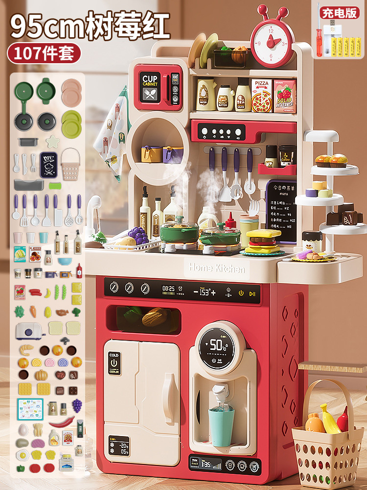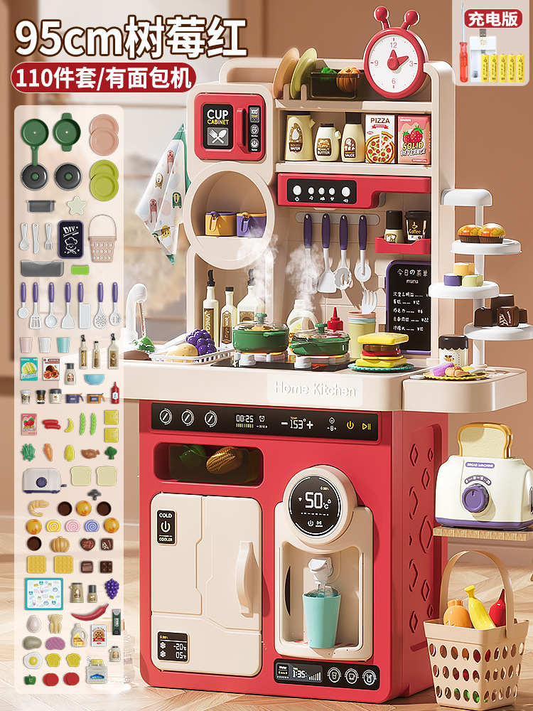 • 110개 + 빵 기계 [정수기/음식 색상 변경/증기/소리와 빛] 라즈베리 레드 95cm 럭셔리 충전식 버전 [선물 상자 포함]
