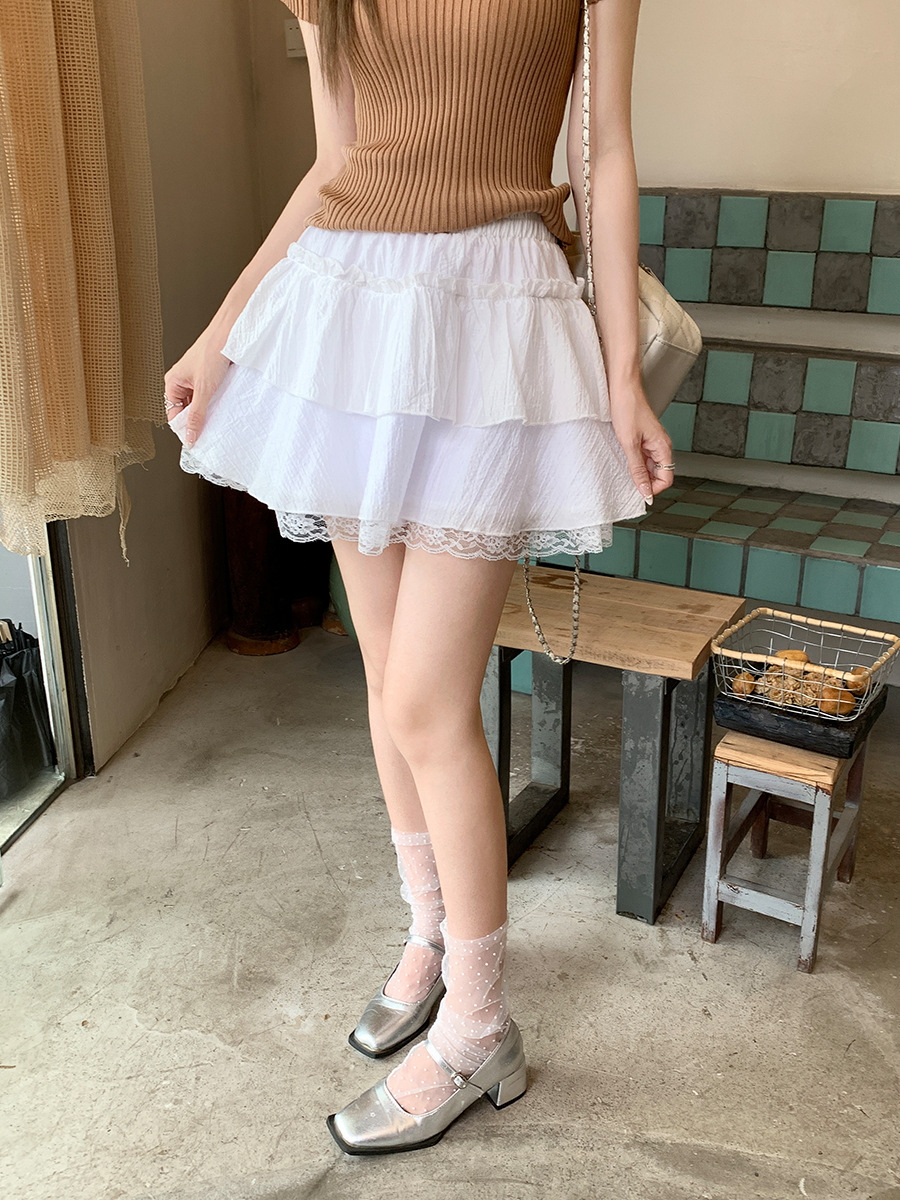 여성을위한 화이트 레이스 케이크 스커트 2025 여름 새로운 다목적 달콤한 순수한 정욕 스타일 하이 웨이스트 슬림 스커트스토어 가기