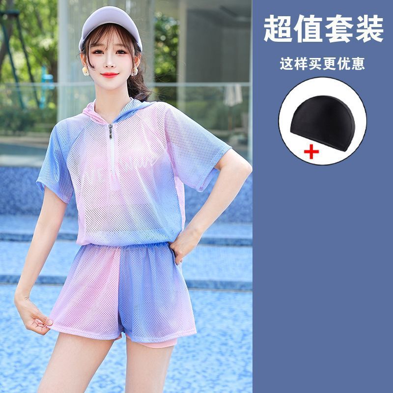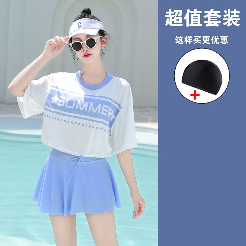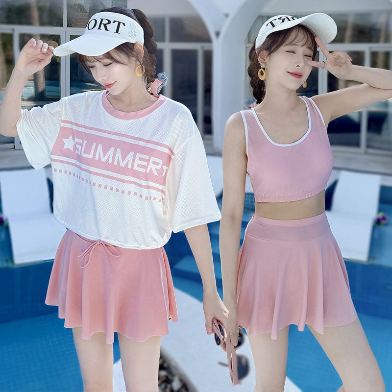 수영복 여성의 보수적 인 분할 새 스타일 약간의 뚱뚱한 소녀의 고기를 덮는 여성 수영복 3 피스 세트 하이 엔드 수영복 빠른 건조스토어 가기