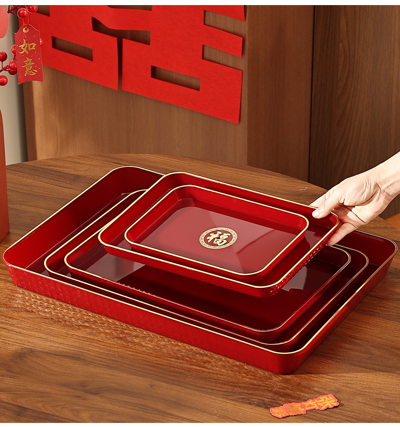 새로운 중국 웨딩 티 트레이 레드 티 토스트 특별한 트레이 직사각형 호텔 웨딩 웨딩 연회 과일 트레이스토어 가기
