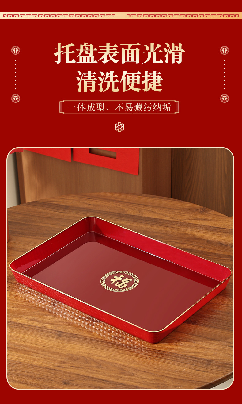 새로운 중국 웨딩 티 트레이 레드 티 토스트 특별한 트레이 직사각형 호텔 웨딩 웨딩 연회 과일 트레이
