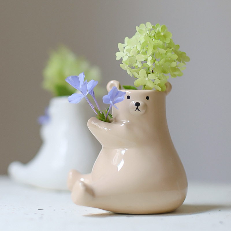 새로운 거실 데스크탑 만화 귀여운 세라믹 곰 수경 식물 화분 꽃병 크리 에이 티브 선물 장식 꽃 예술
