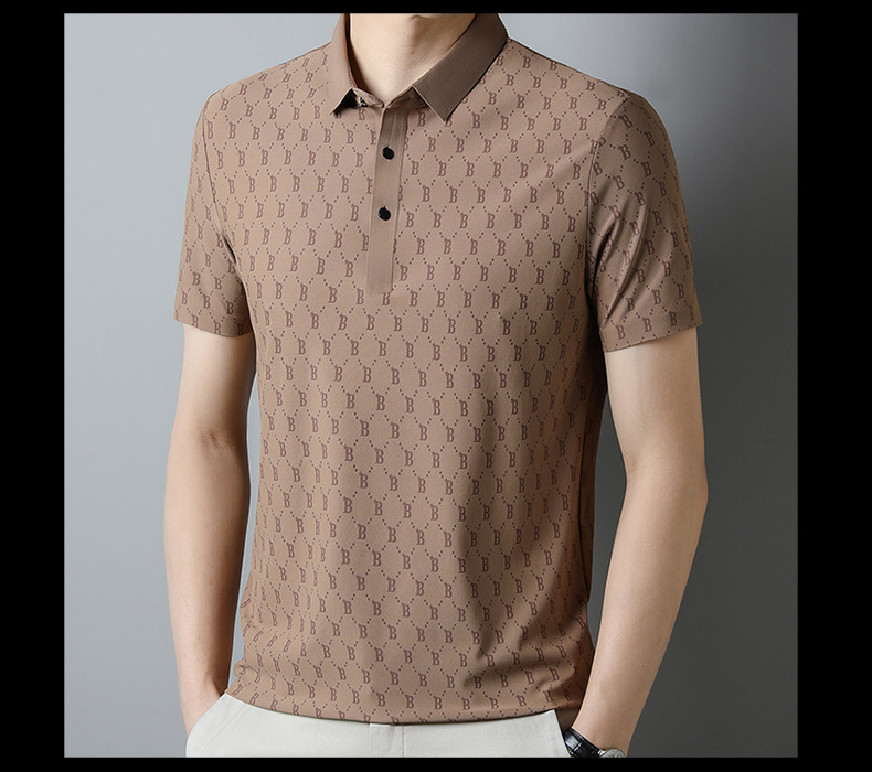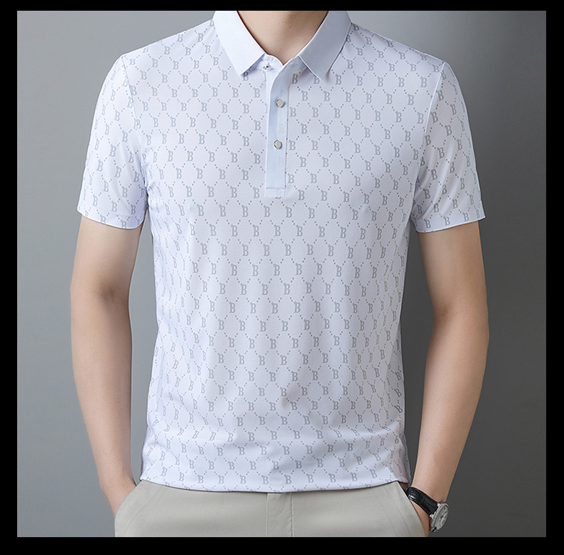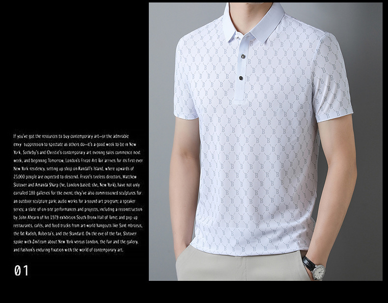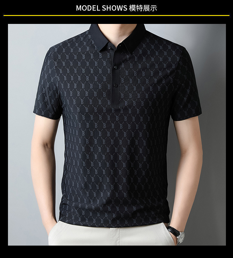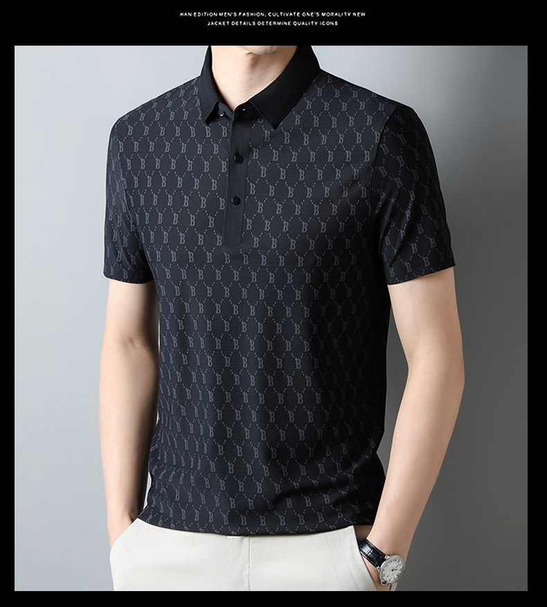 여름 프린트 티셔츠 남성용 반팔 하이 엔드 비즈니스 남성 셔츠 칼라 아이스 실크 폴로 셔츠 속건 탑 9999
