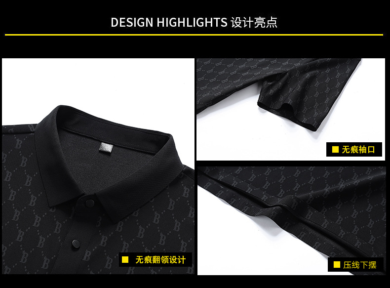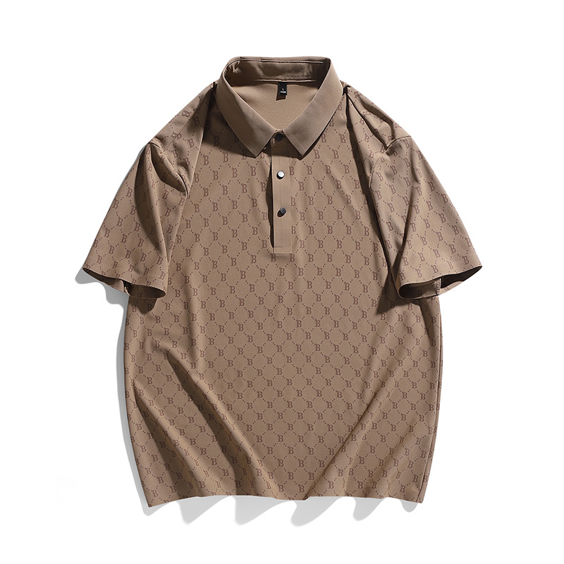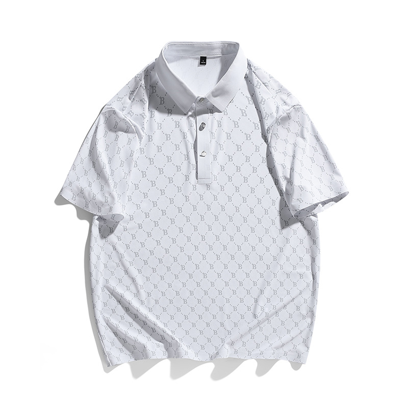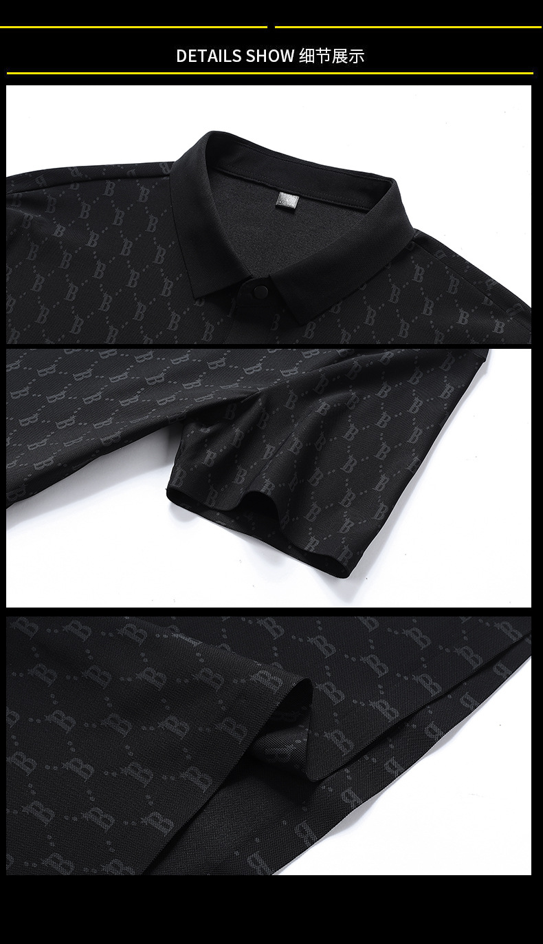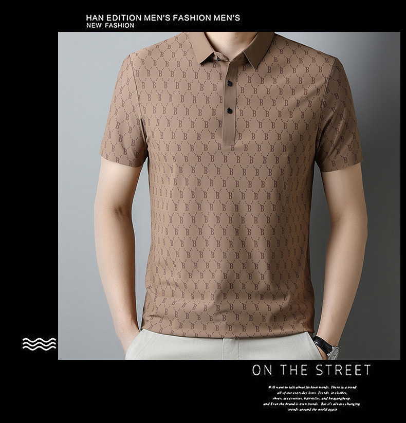 여름 프린트 티셔츠 남성용 반팔 하이 엔드 비즈니스 남성 셔츠 칼라 아이스 실크 폴로 셔츠 속건 탑 9999