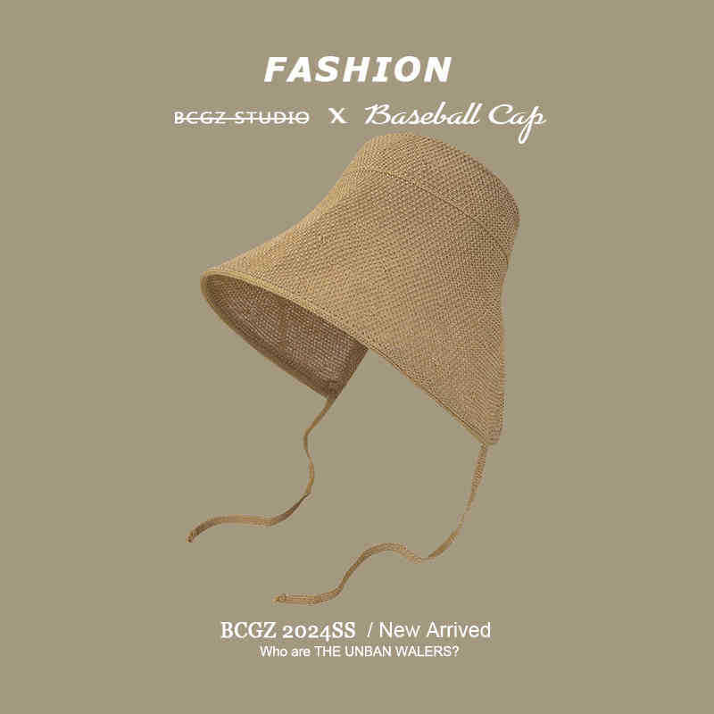 Jinchen의 같은 스타일 모조 면 및 린넨 여름 밀짚 모자 자외선 차단 모자 해변 뜨개질 모자 여성 휴가 어부 모자