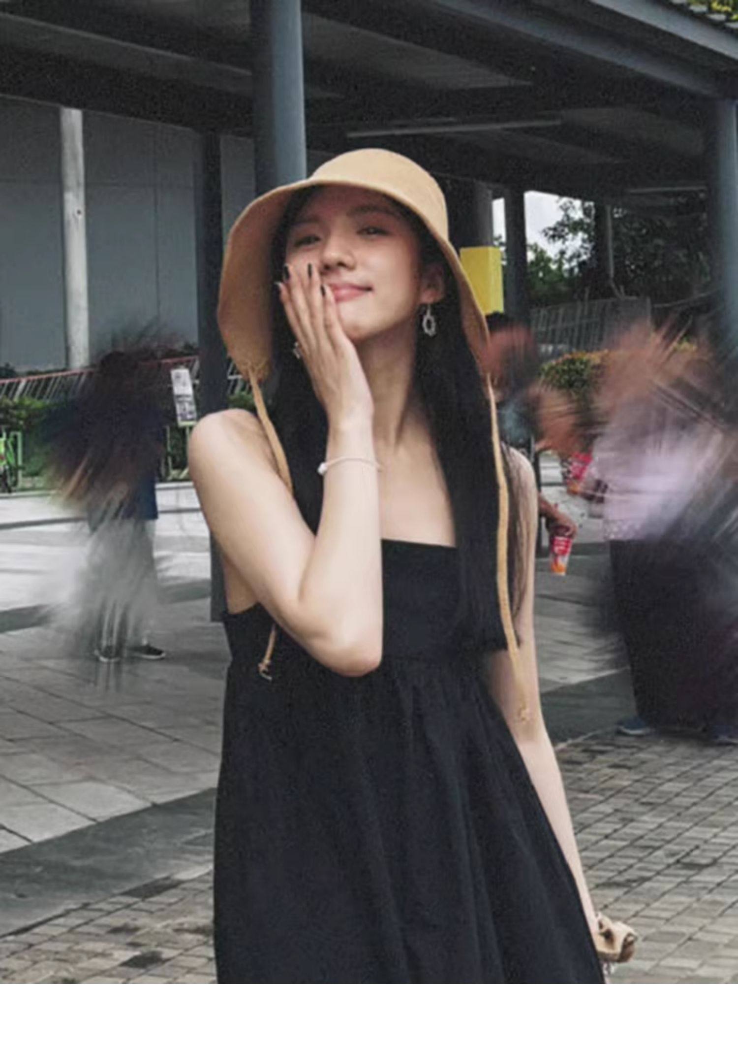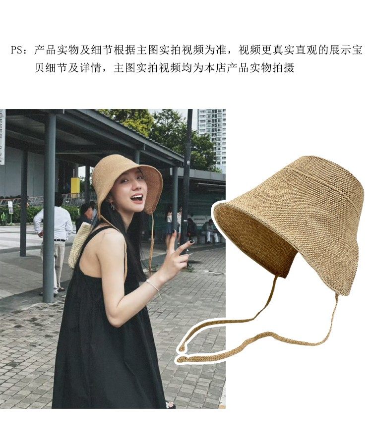 Jinchen의 같은 스타일 모조 면 및 린넨 여름 밀짚 모자 자외선 차단 모자 해변 뜨개질 모자 여성 휴가 어부 모자스토어 가기