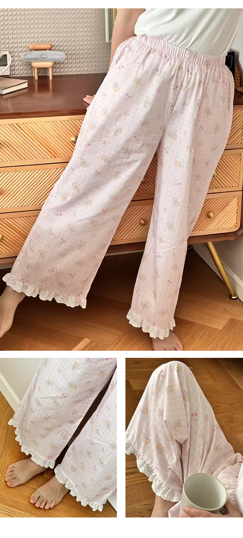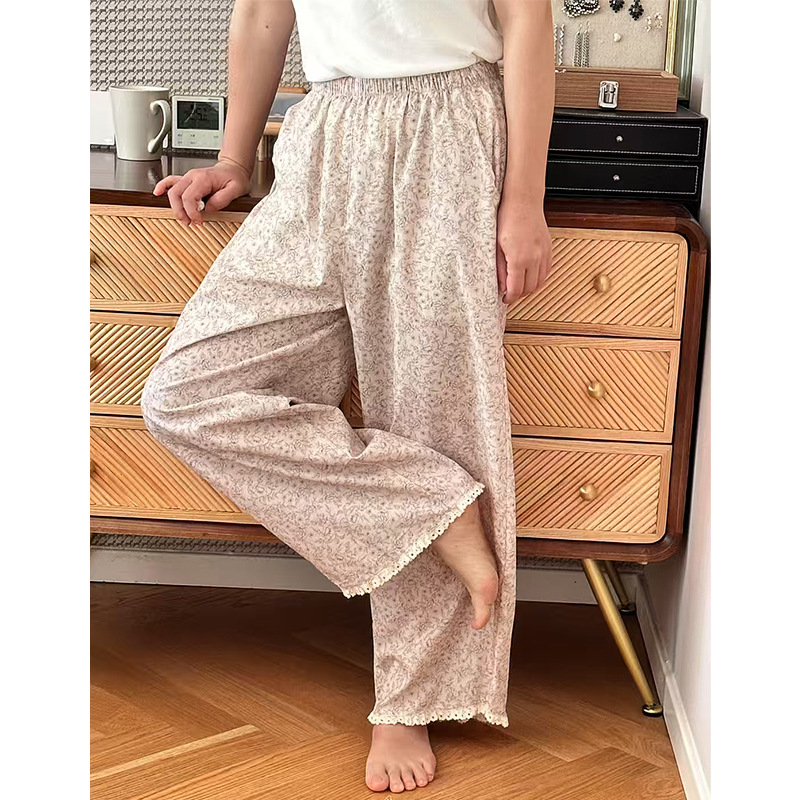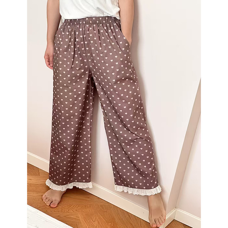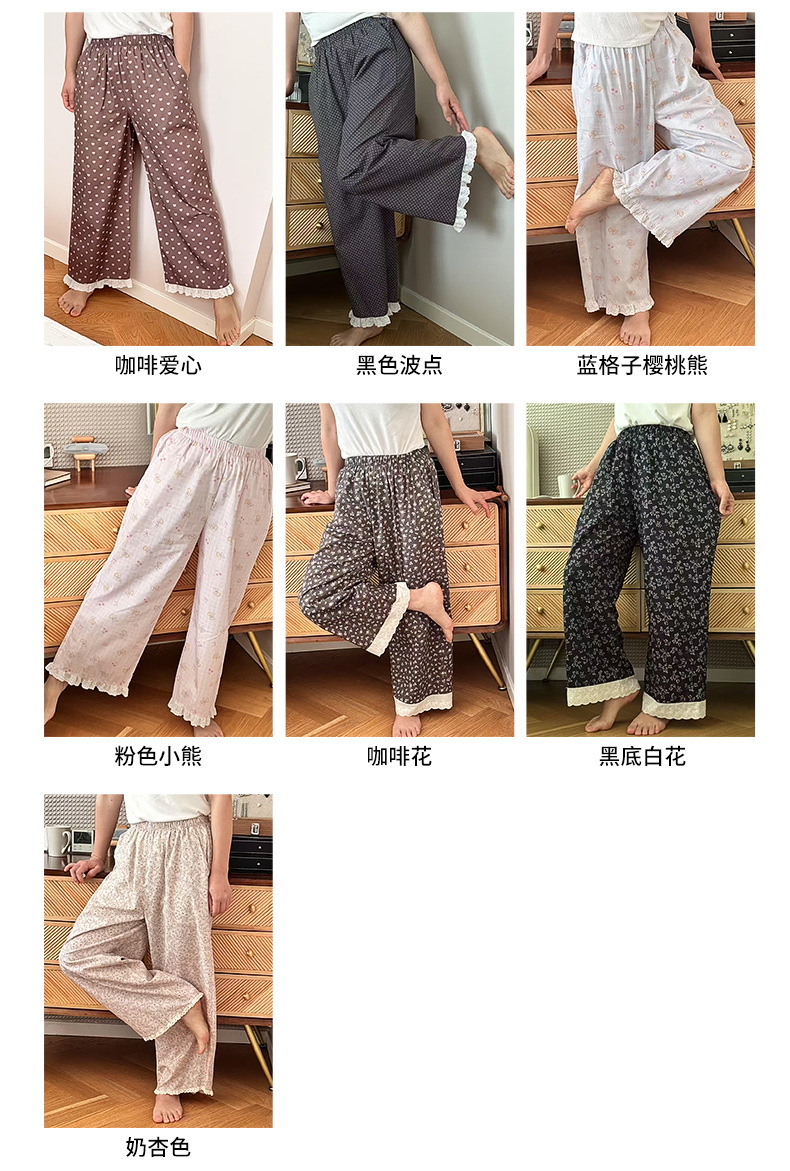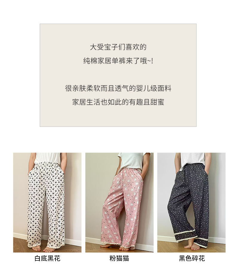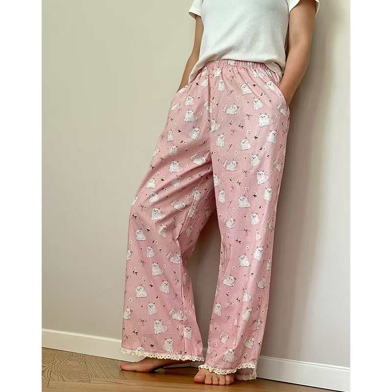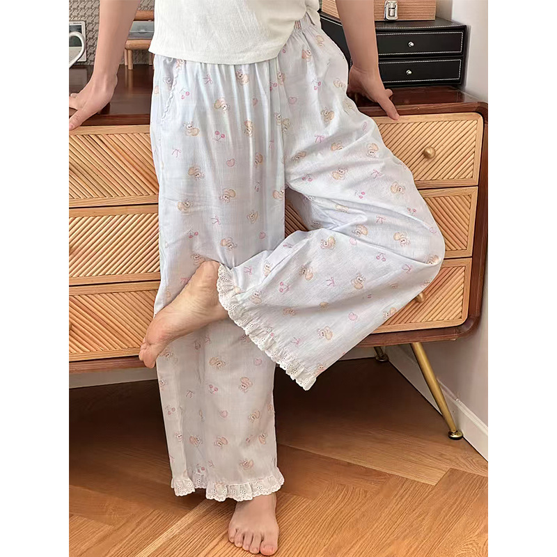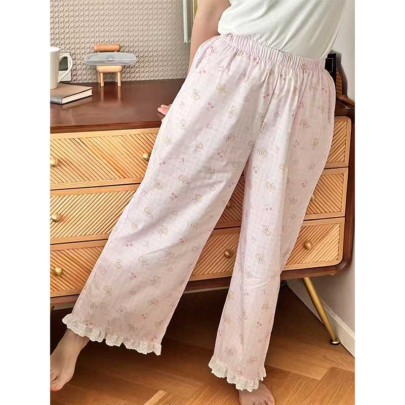 여름 한국 스타일 달콤하고 귀여운 소녀의 얇은 면 만화 잠옷, 학생용 홈 바지, 여성용 야외 착용 가능