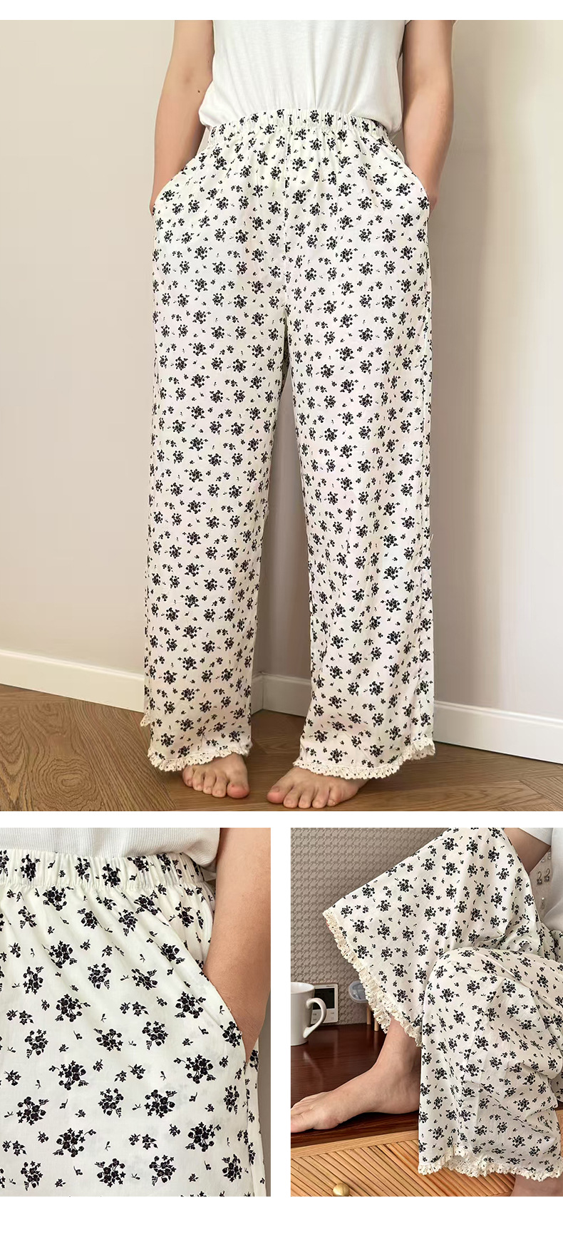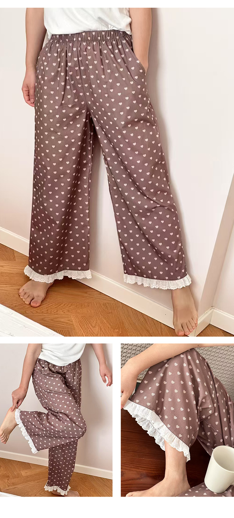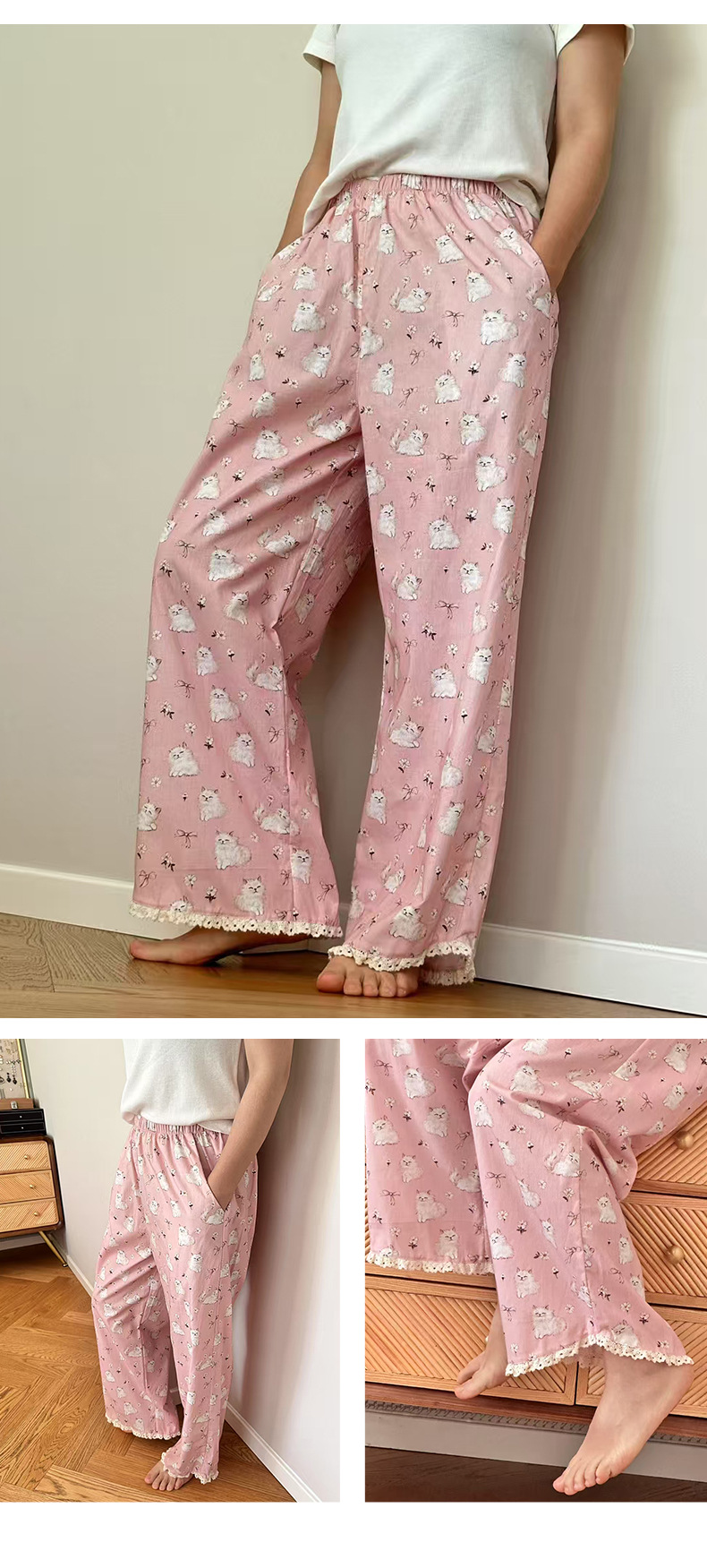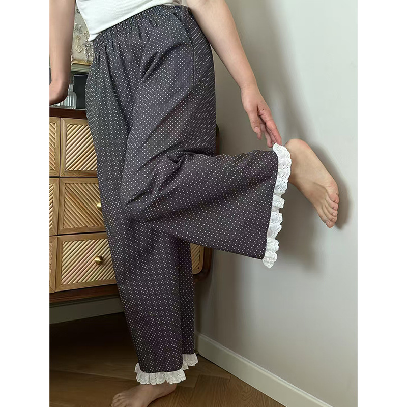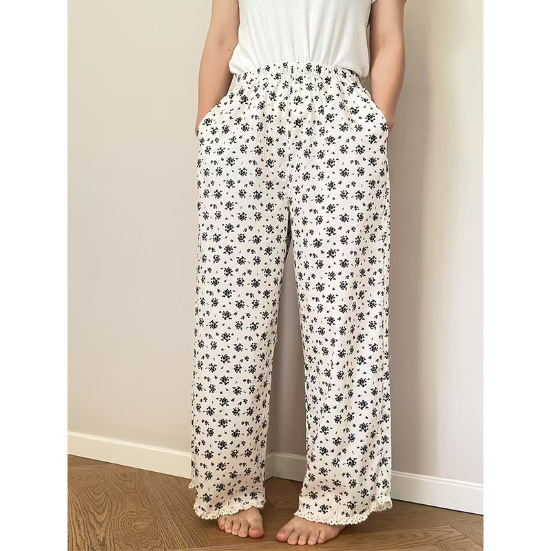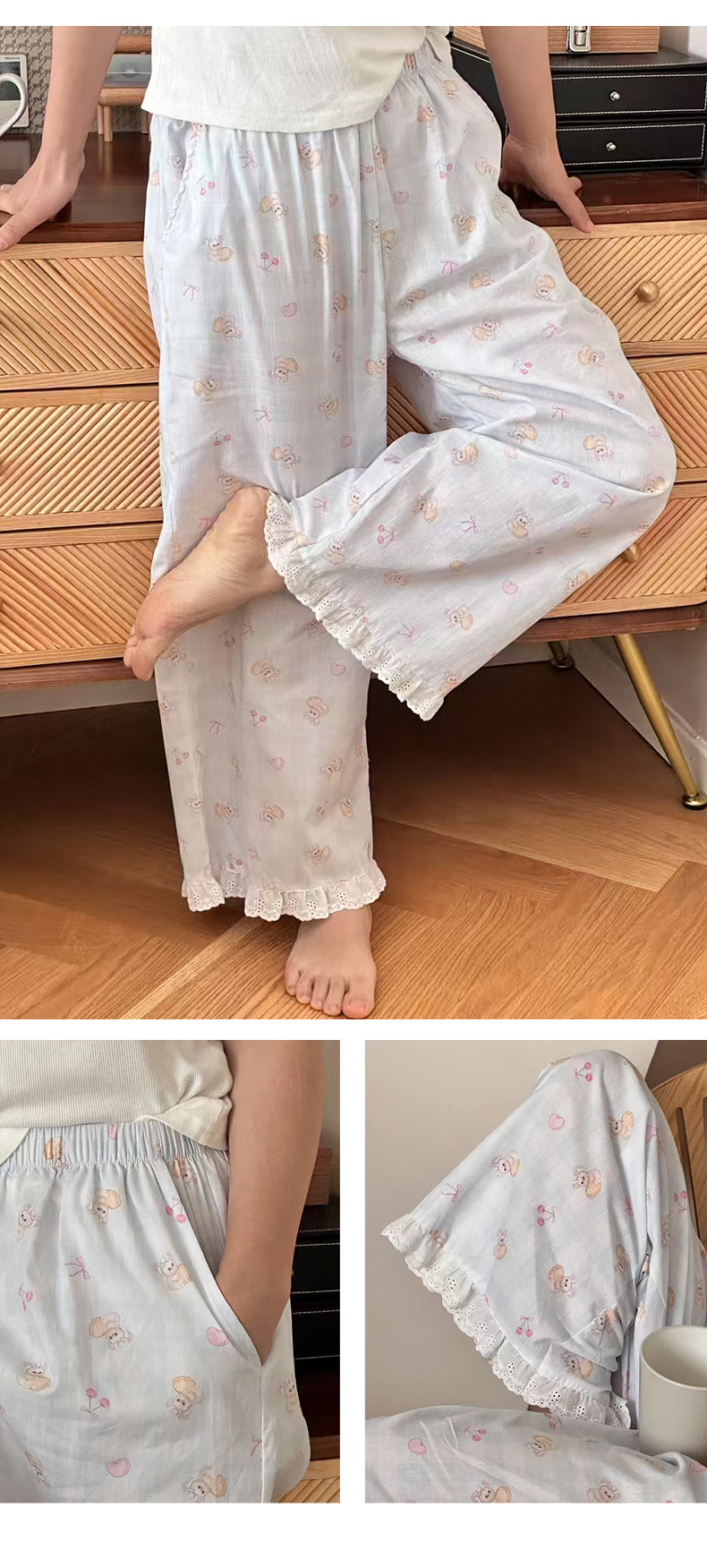 여름 한국 스타일 달콤하고 귀여운 소녀의 얇은 면 만화 잠옷, 학생용 홈 바지, 여성용 야외 착용 가능