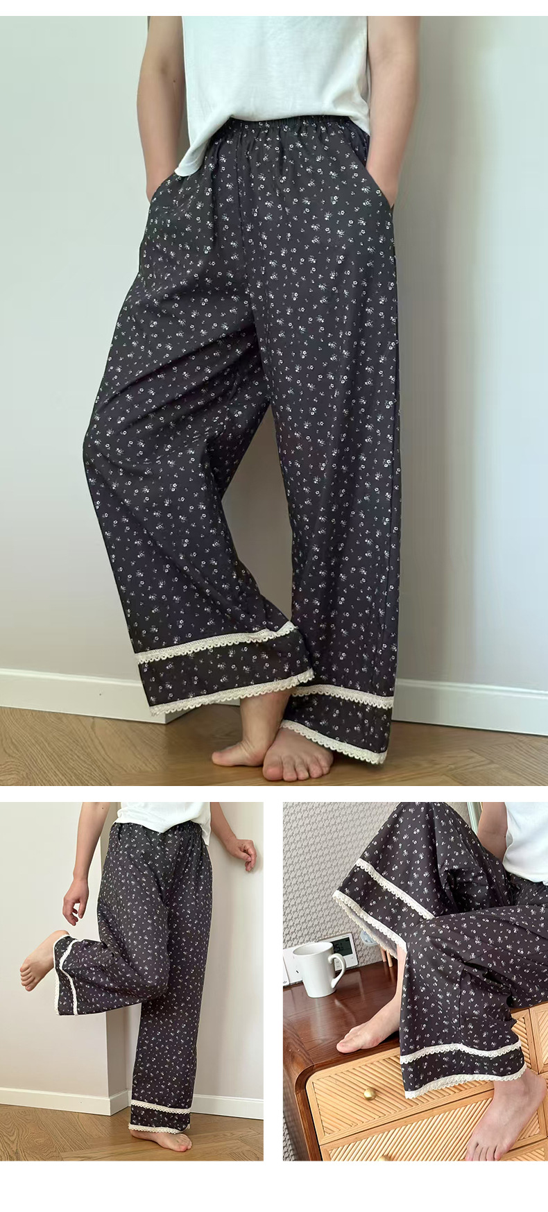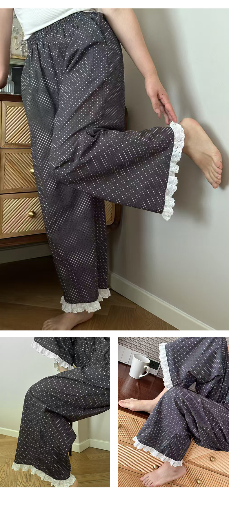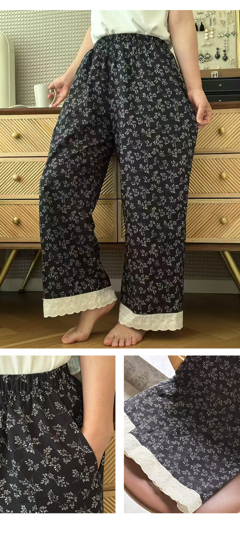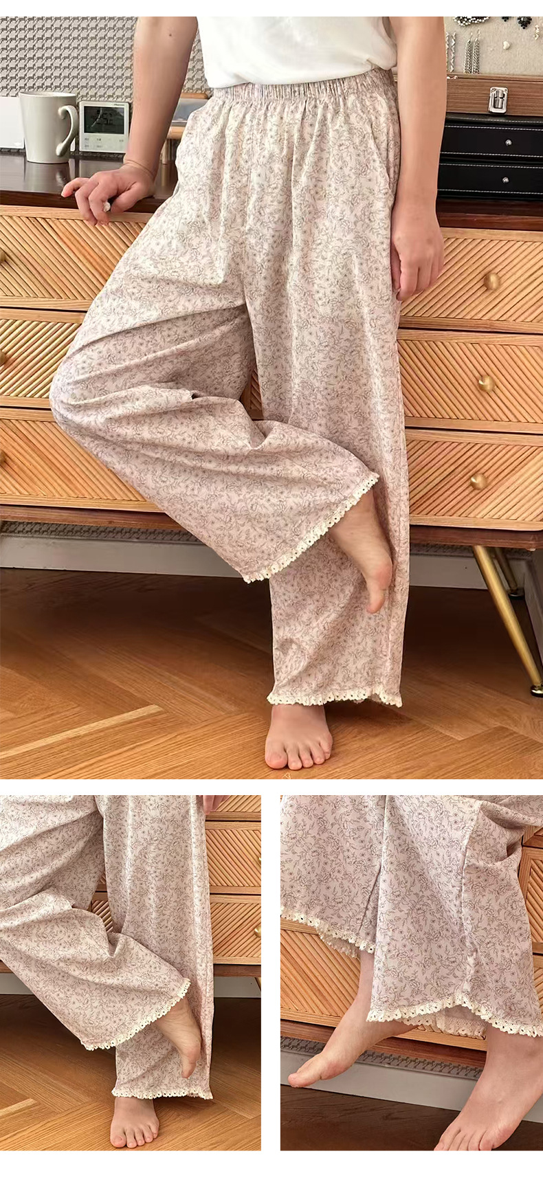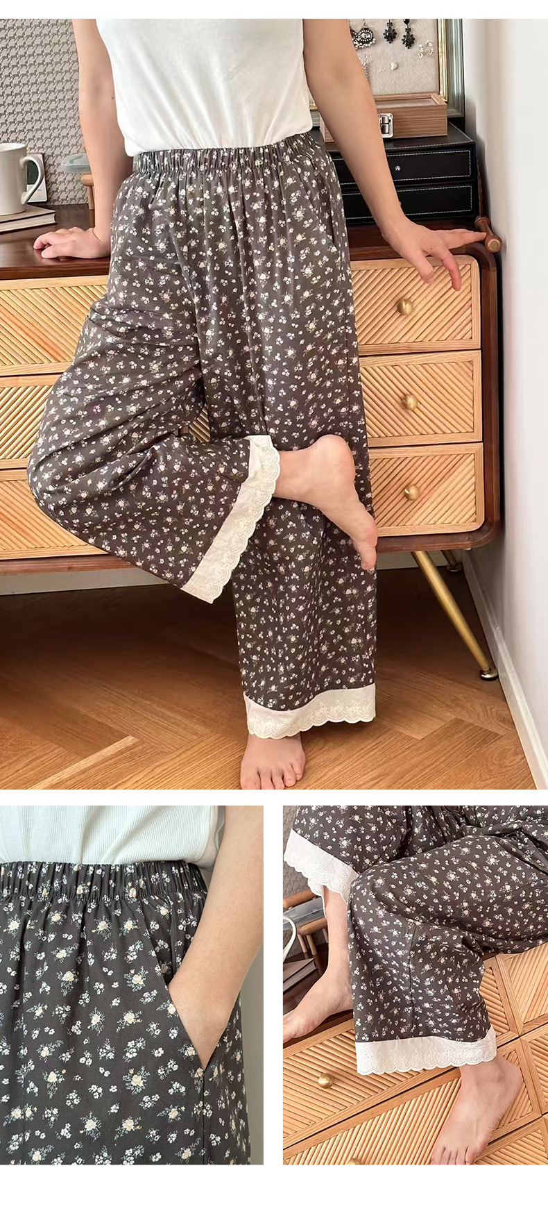 여름 한국 스타일 달콤하고 귀여운 소녀의 얇은 면 만화 잠옷, 학생용 홈 바지, 여성용 야외 착용 가능