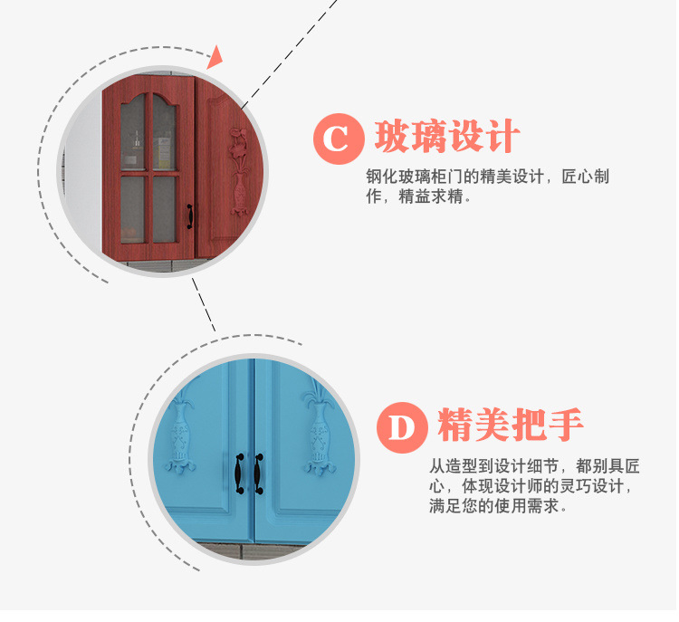 • 유리 조각 캐비닛 도어 조합-90*32*80cm 높이 파란색