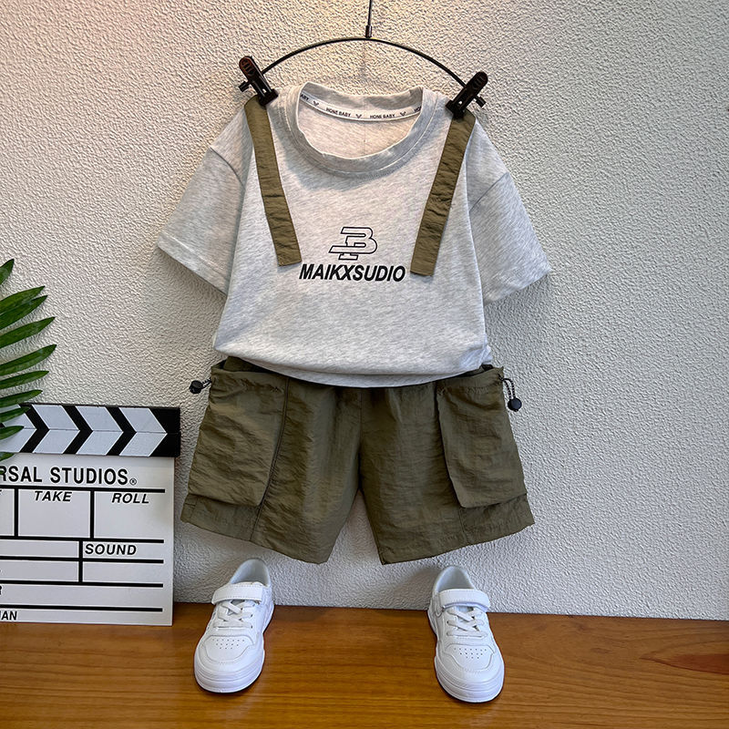 아기 여름 정장 2025 새로운 스타일 어린이 반팔 멋진 잘 생긴 소년 여름 정장 잘 생긴 옷 투피스 세트 유행스토어 가기