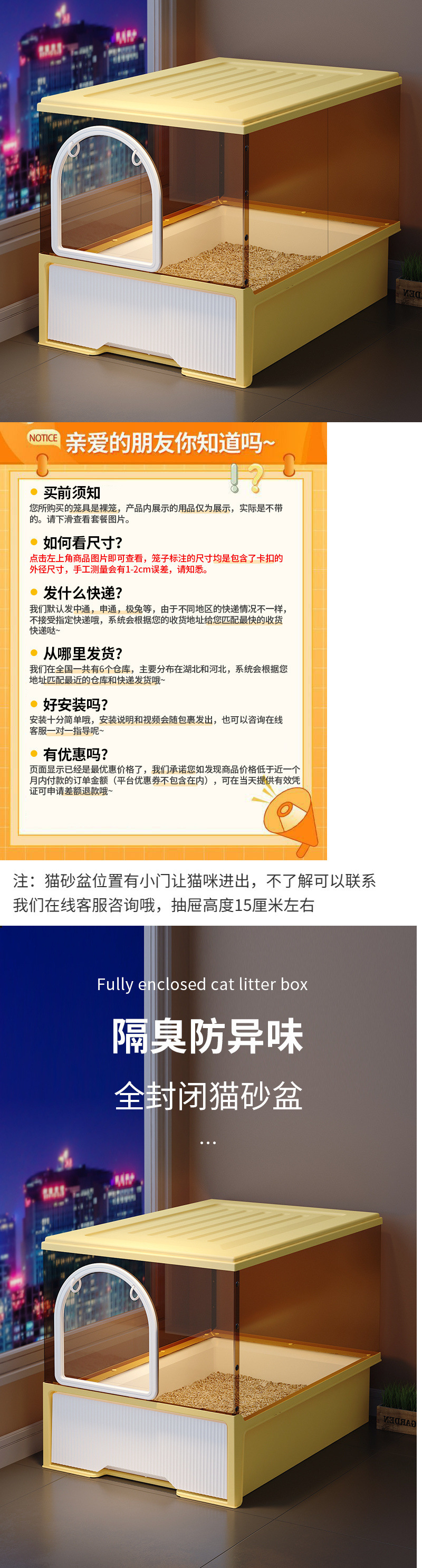 • 가을 노란색 53*41*44 무료 고양이 쓰레기 삽 + 01 고양이 쓰레기 매트