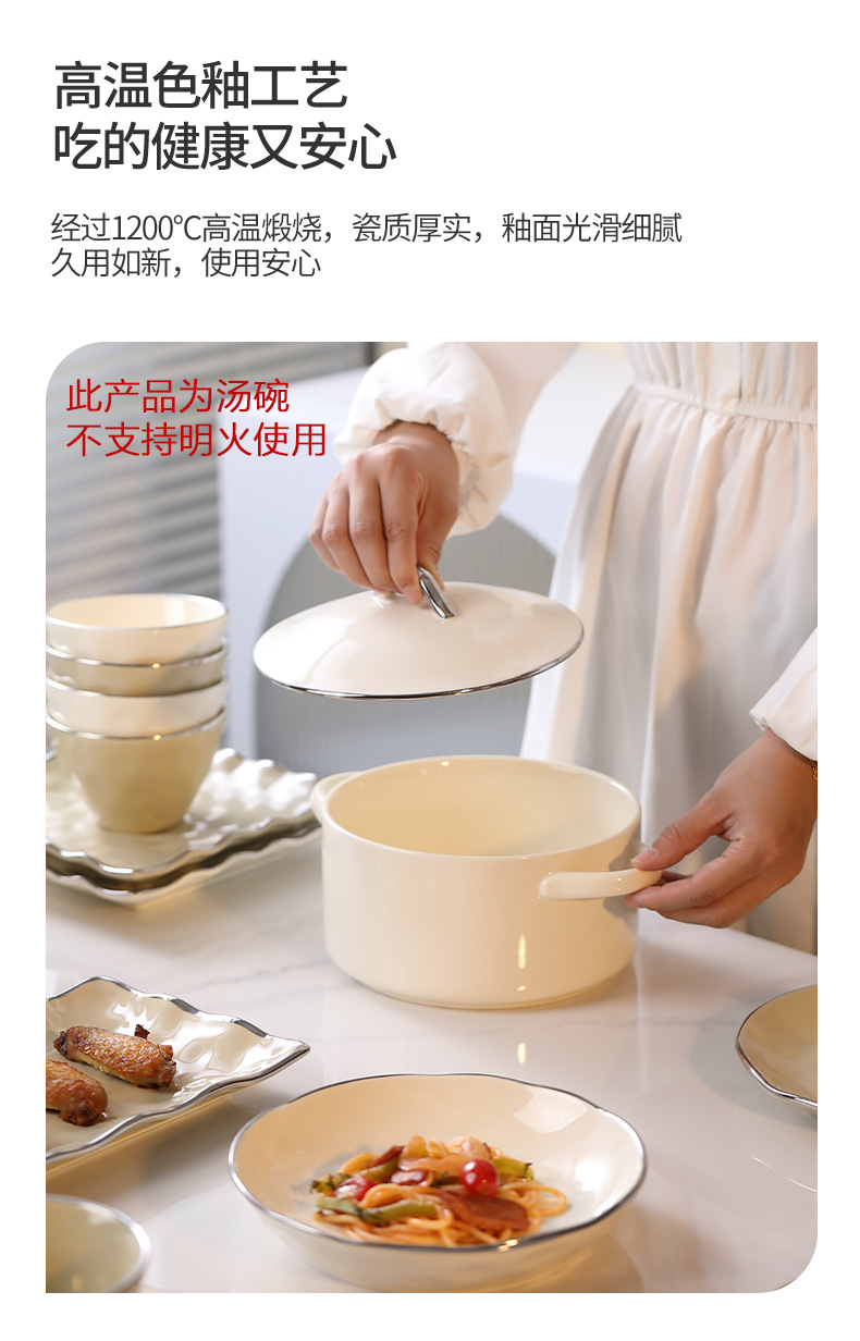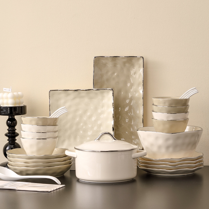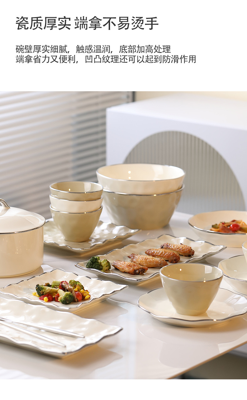 세라믹 고급 그릇 및 접시 크림 그릇 및 접시 세트 가정용 스타일 2024 선물을주는 접시 새로운 스타일 집들이 식기 그릇 및 젓가락