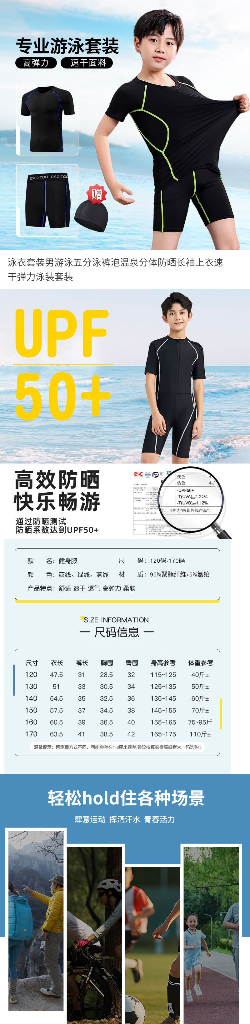 남아용, 중대형 아동용 수영복, 아동 및 청소년 수영 트렁크, 전문 스플릿 자외선 차단제, 속건성, 학생용 플러스 사이즈