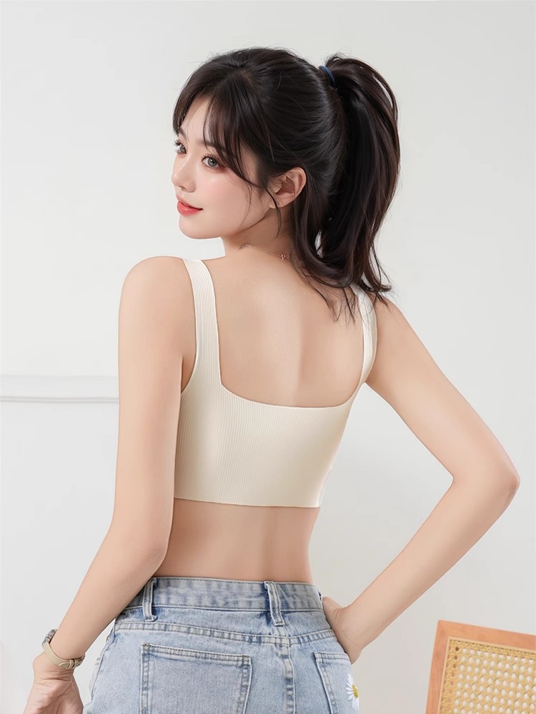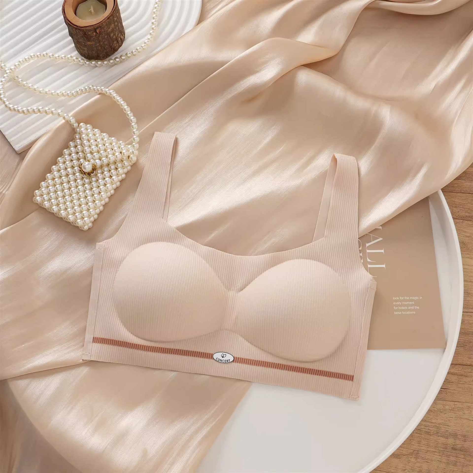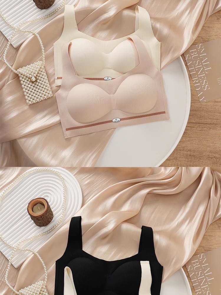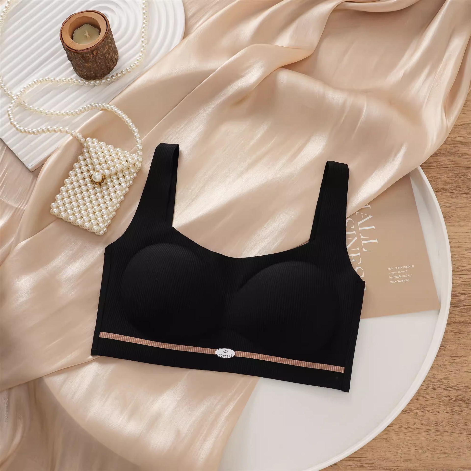 여성용 오리지널 심리스 레터 조끼 속옷, 작은 가슴을 밀어 올려주는, 보조 가슴을 조이는, 고정 컵 브라, 가볍고 얇은 올인원