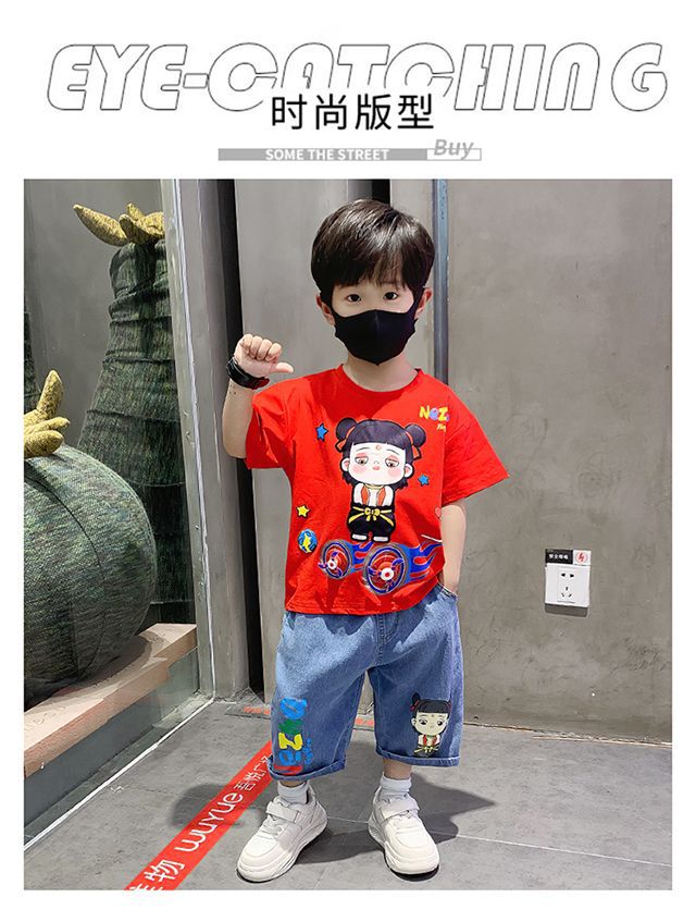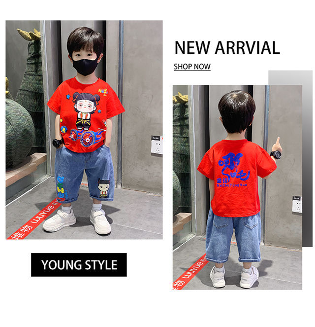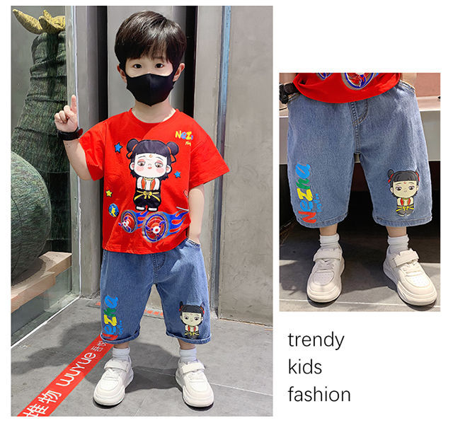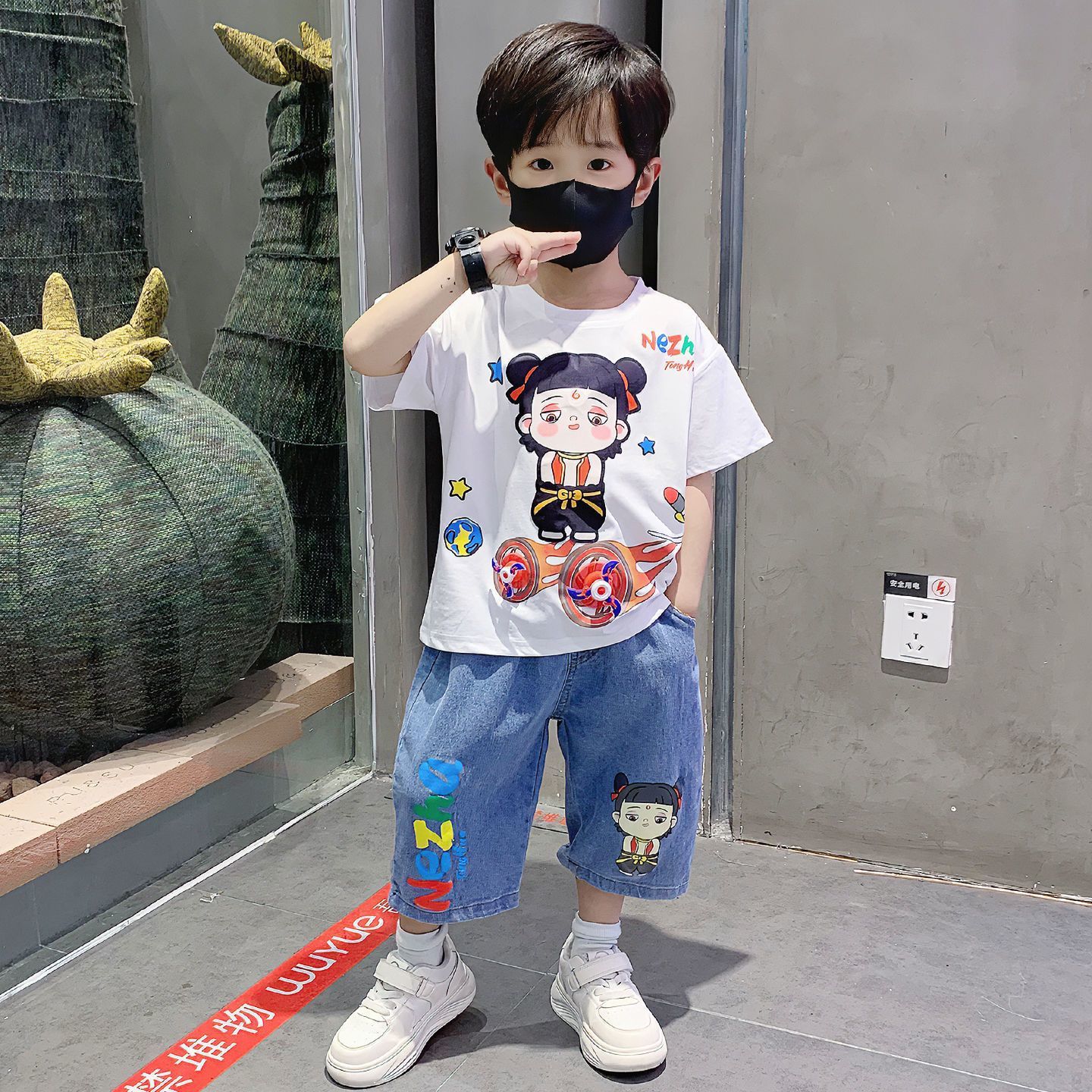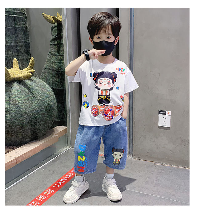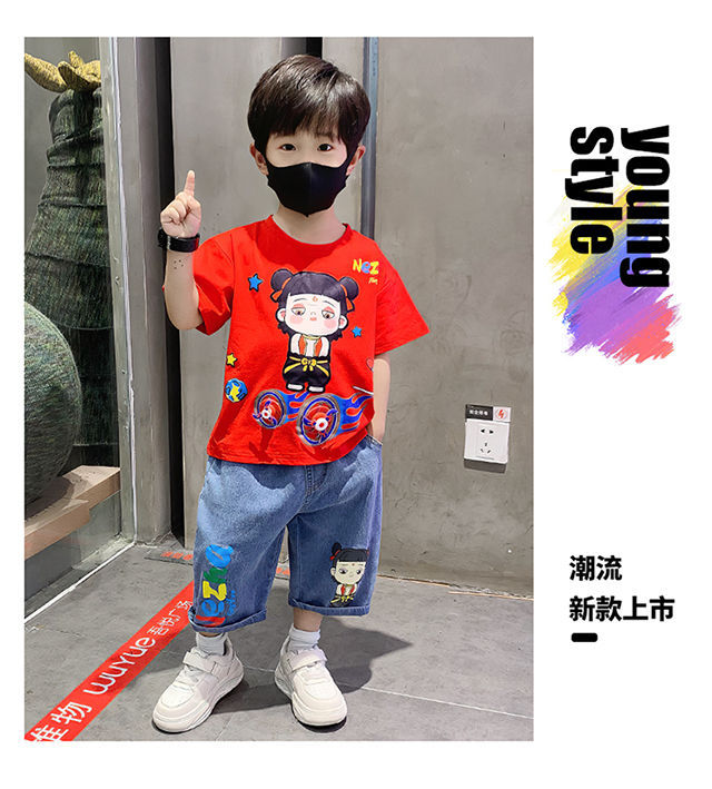 어떤 아동복 소년 여름 세트 2025 새로운 멋진 잘 생긴 유행 소년 보물 짧은 소매 여름 옷 조수스토어 가기