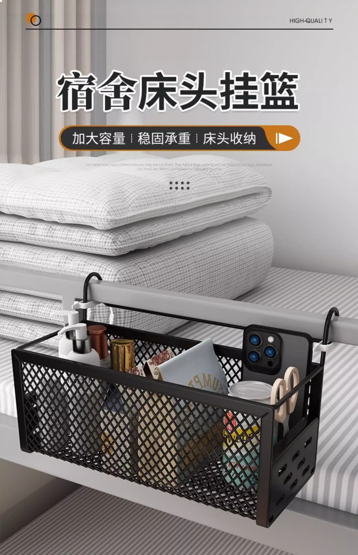 개학 시즌을 위한 새로운 기숙사 침대 옆 걸이 바구니, 학생 기숙사 걸이 바구니 보관함, 기숙사 상단 두꺼운 침대 옆 걸이 바구니스토어 가기
