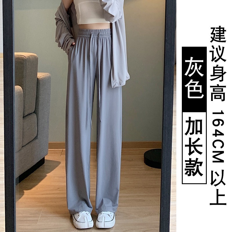 여성용 쿨팬츠 그레이 아이스 실크 와이드 팬츠, 여름용 슬림핏 얇은 루즈한 스포츠 팬츠, 캐주얼 스트레이트 레그 쿨 쿨 선스크린스토어 가기