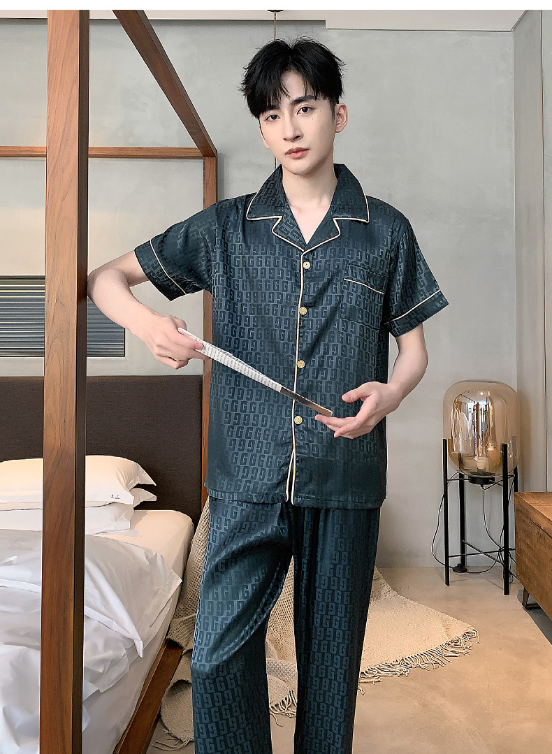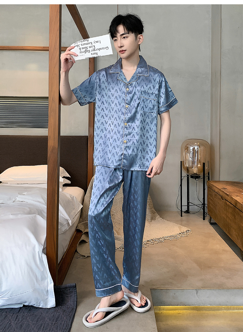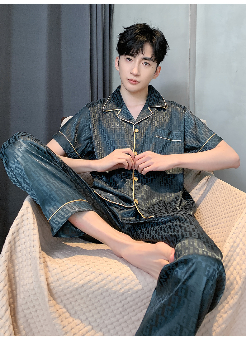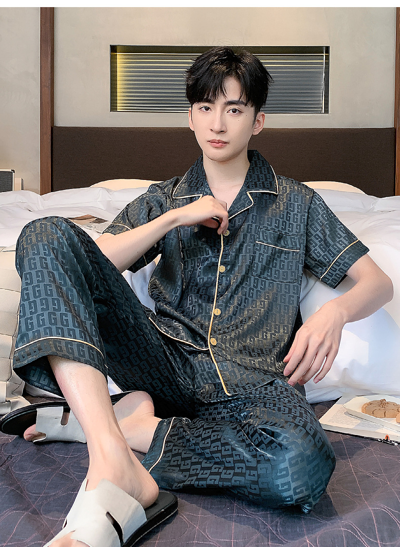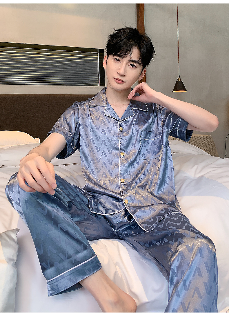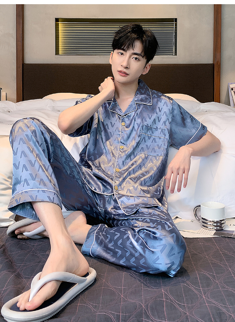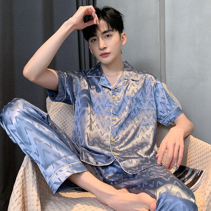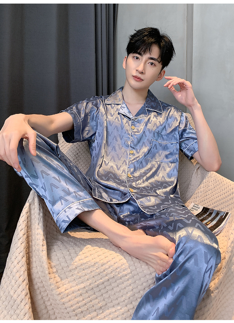 아이스 실크 잠옷 남성 여름 얇은 반팔 바지 시뮬레이션 실크 정장 중년 아빠 봄 여름 홈웨어 정장