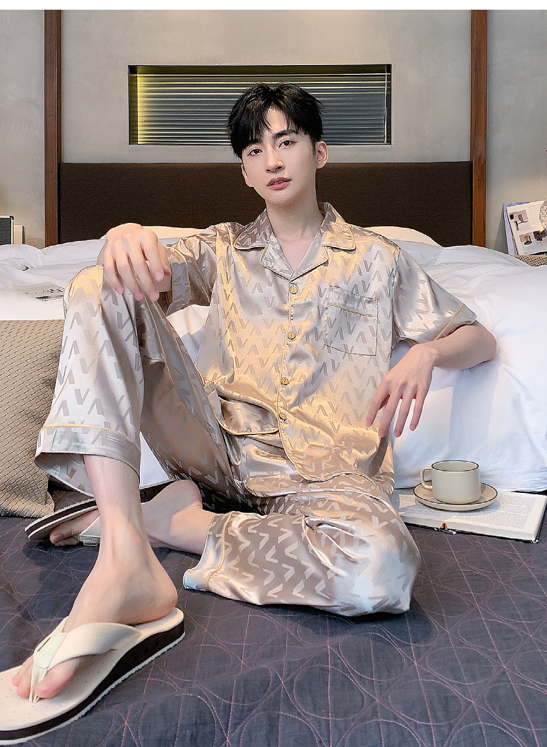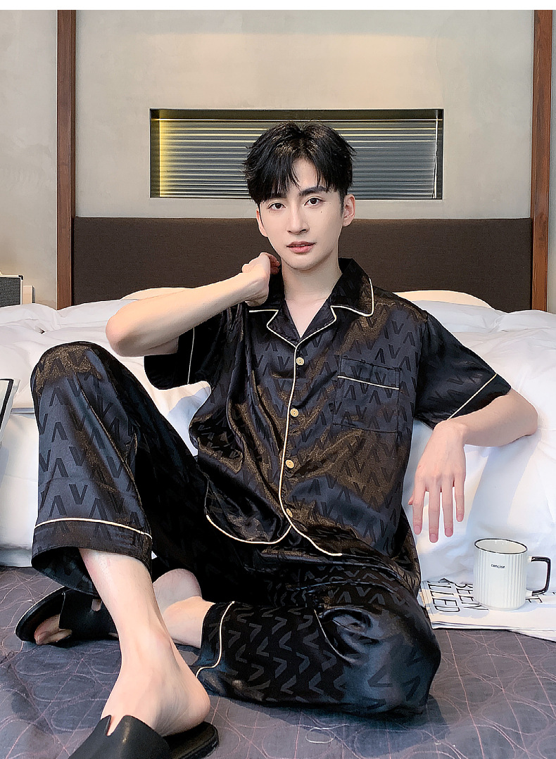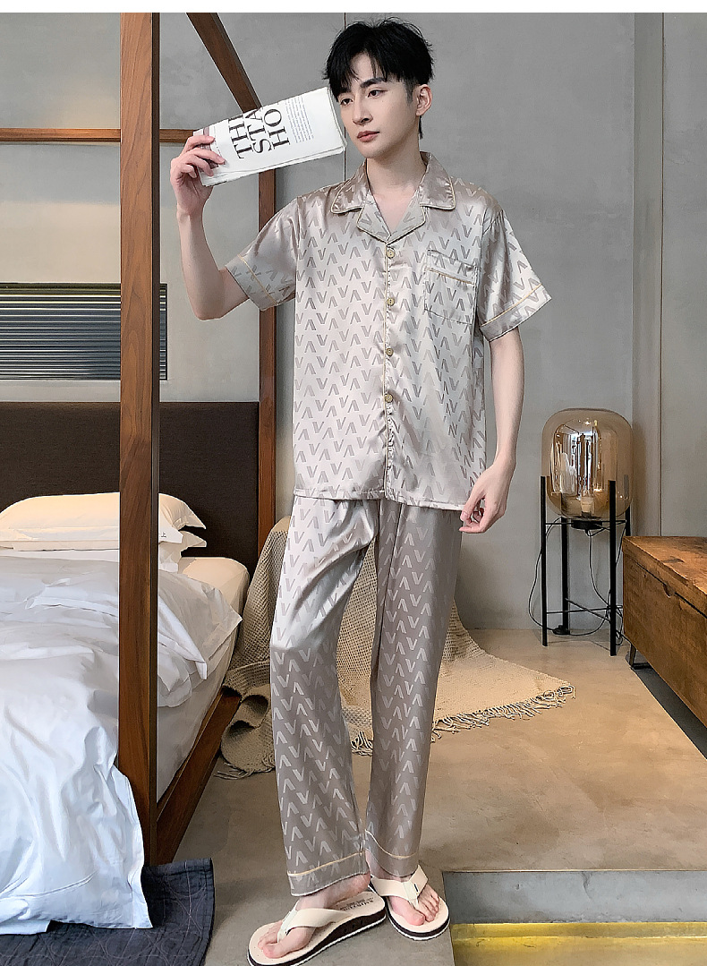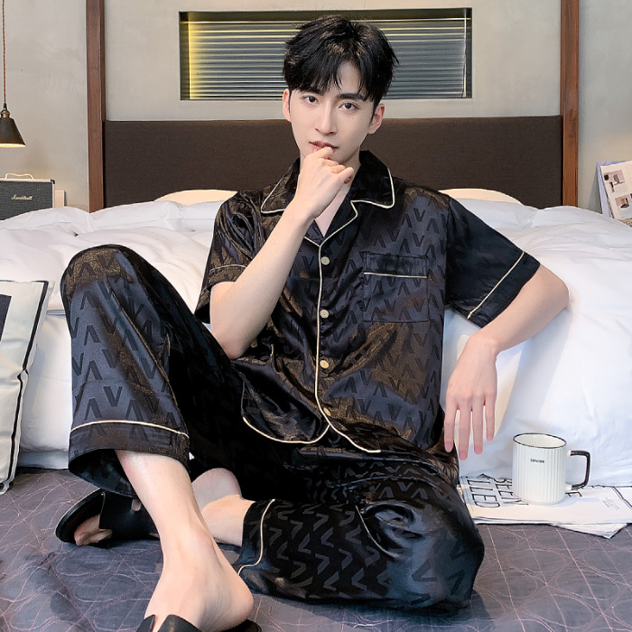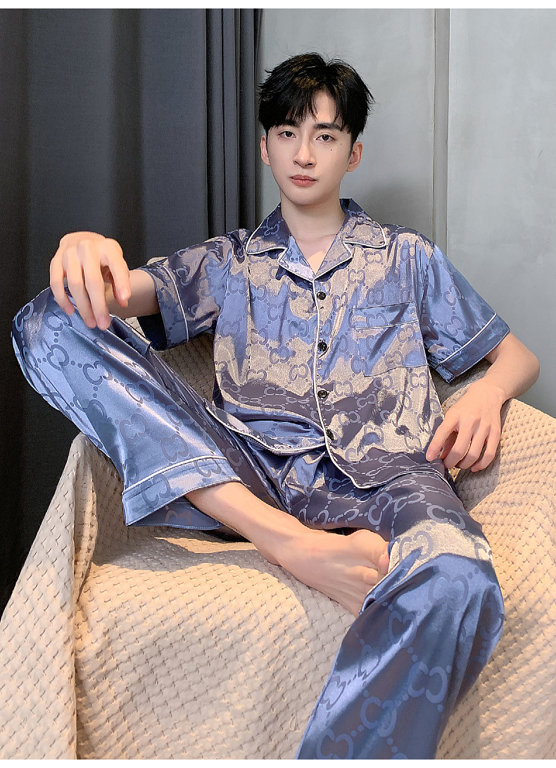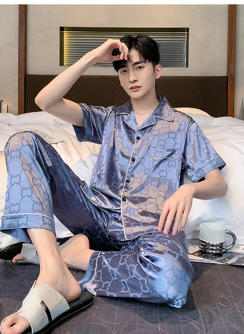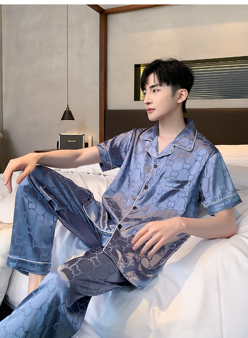 아이스 실크 잠옷 남성 여름 얇은 반팔 바지 시뮬레이션 실크 정장 중년 아빠 봄 여름 홈웨어 정장