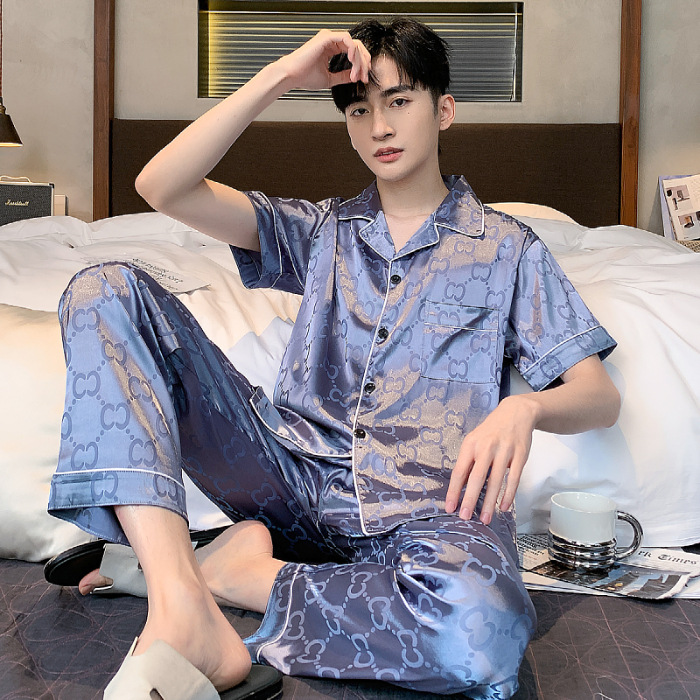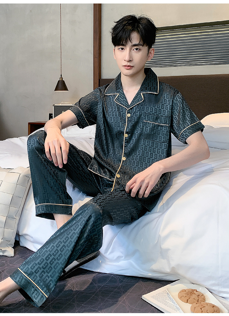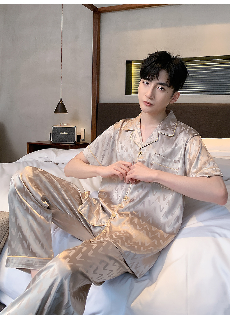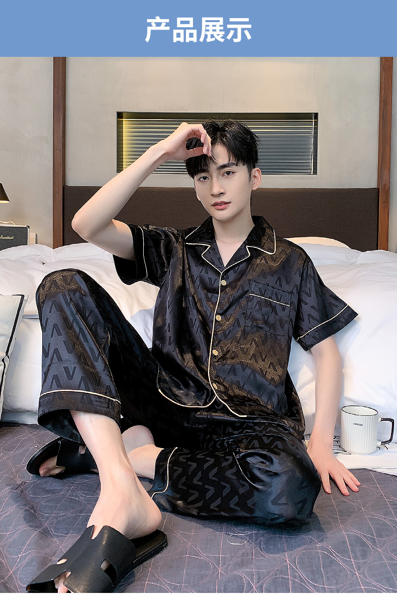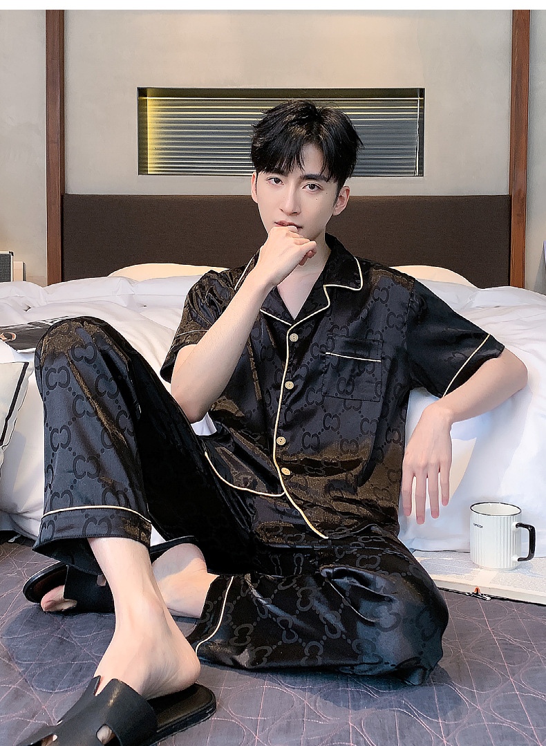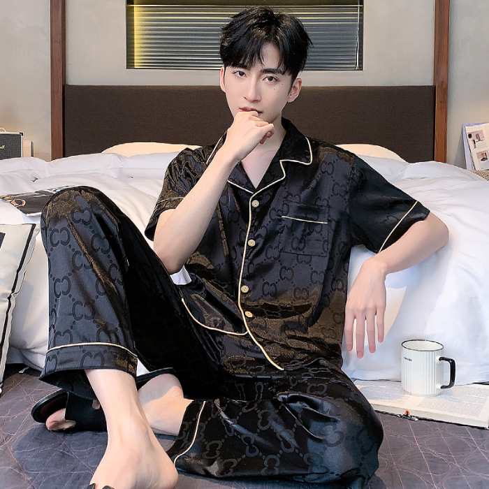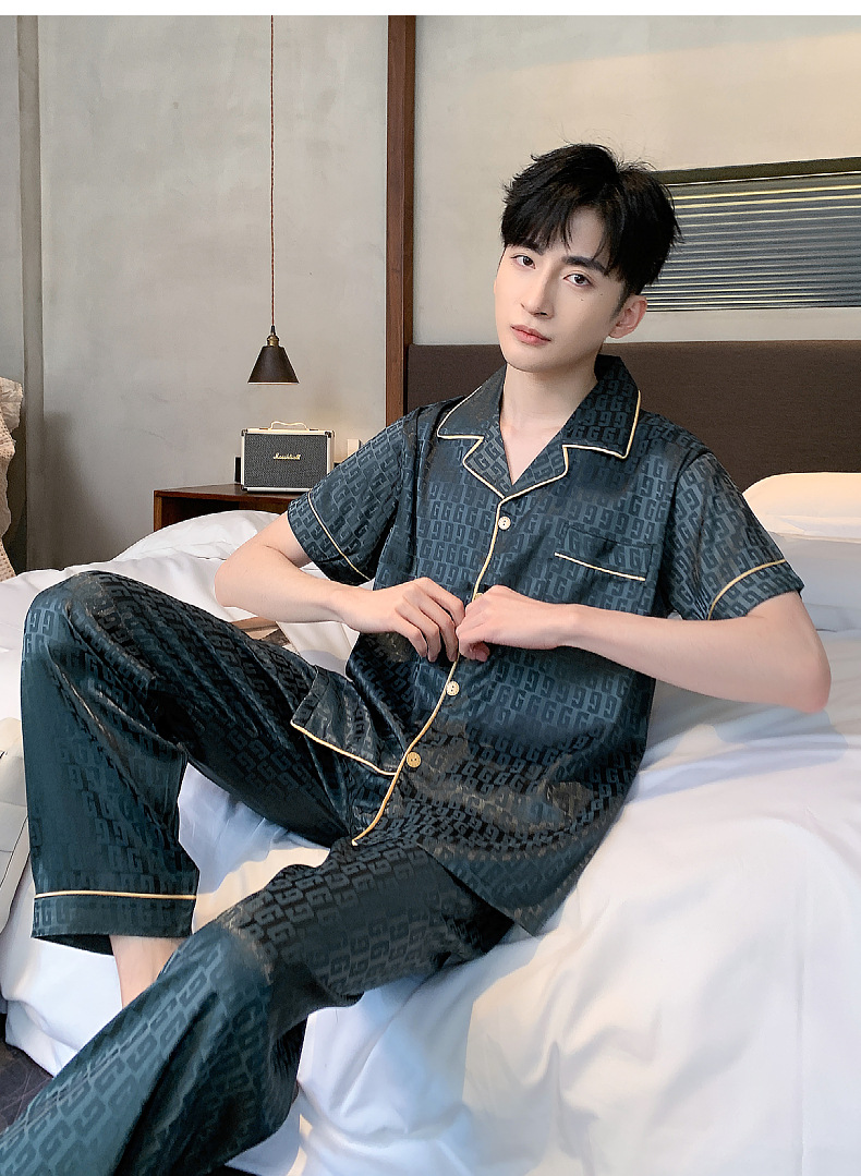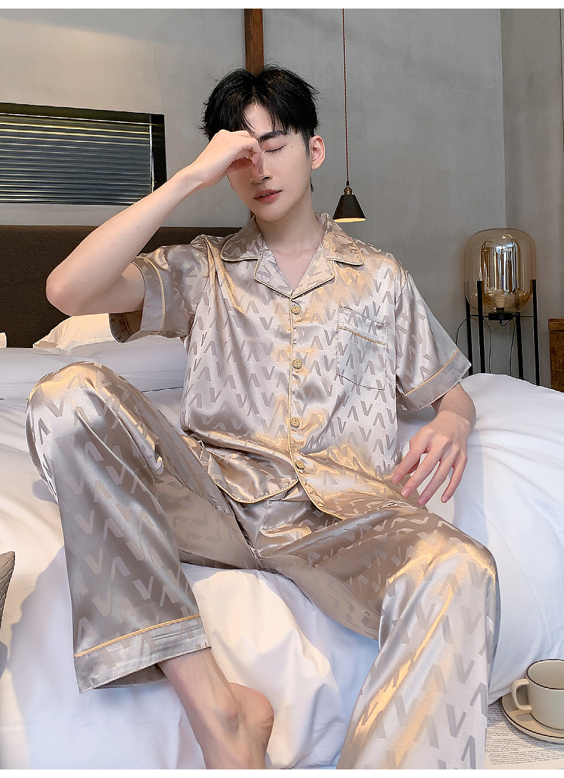 아이스 실크 잠옷 남성 여름 얇은 반팔 바지 시뮬레이션 실크 정장 중년 아빠 봄 여름 홈웨어 정장