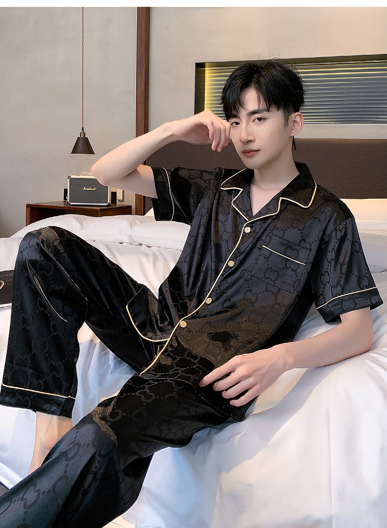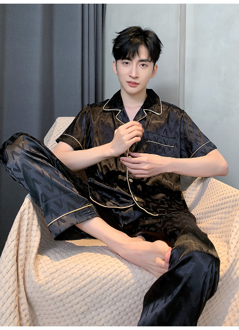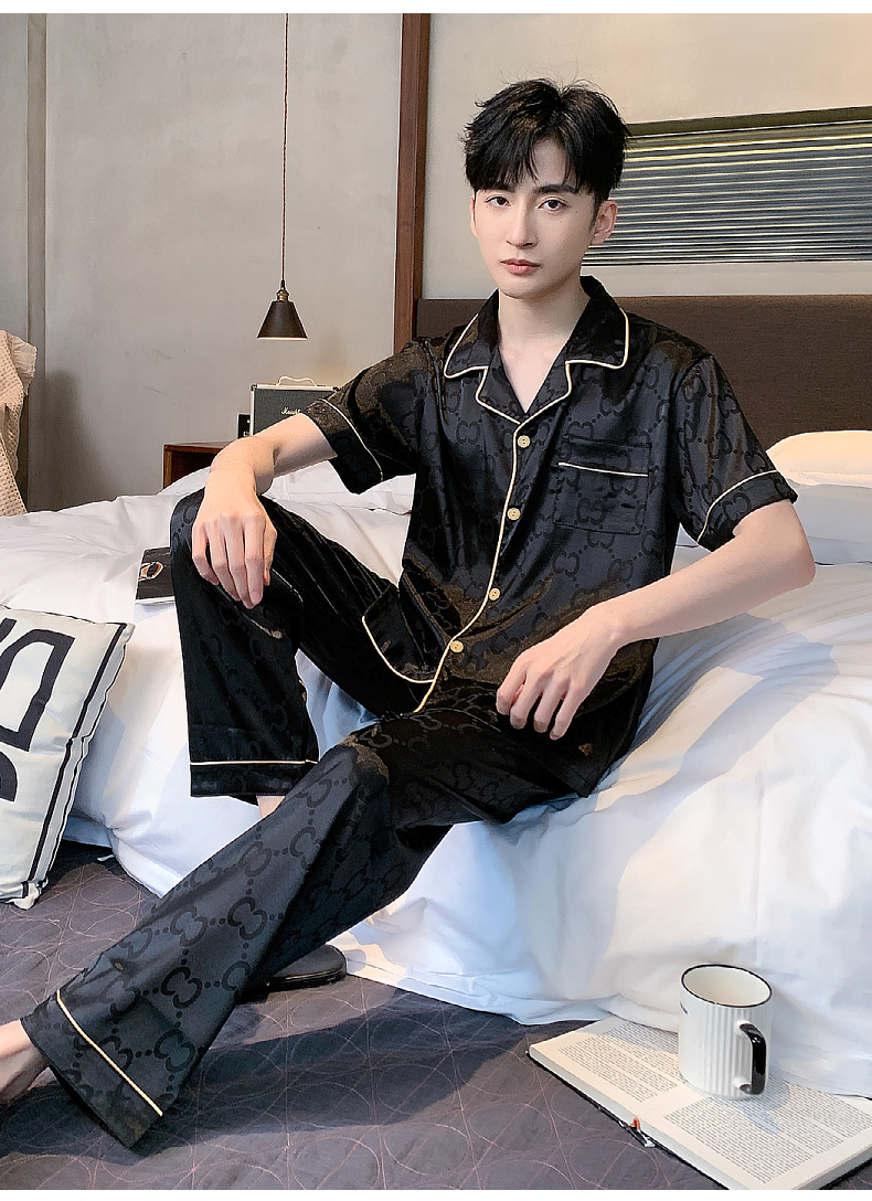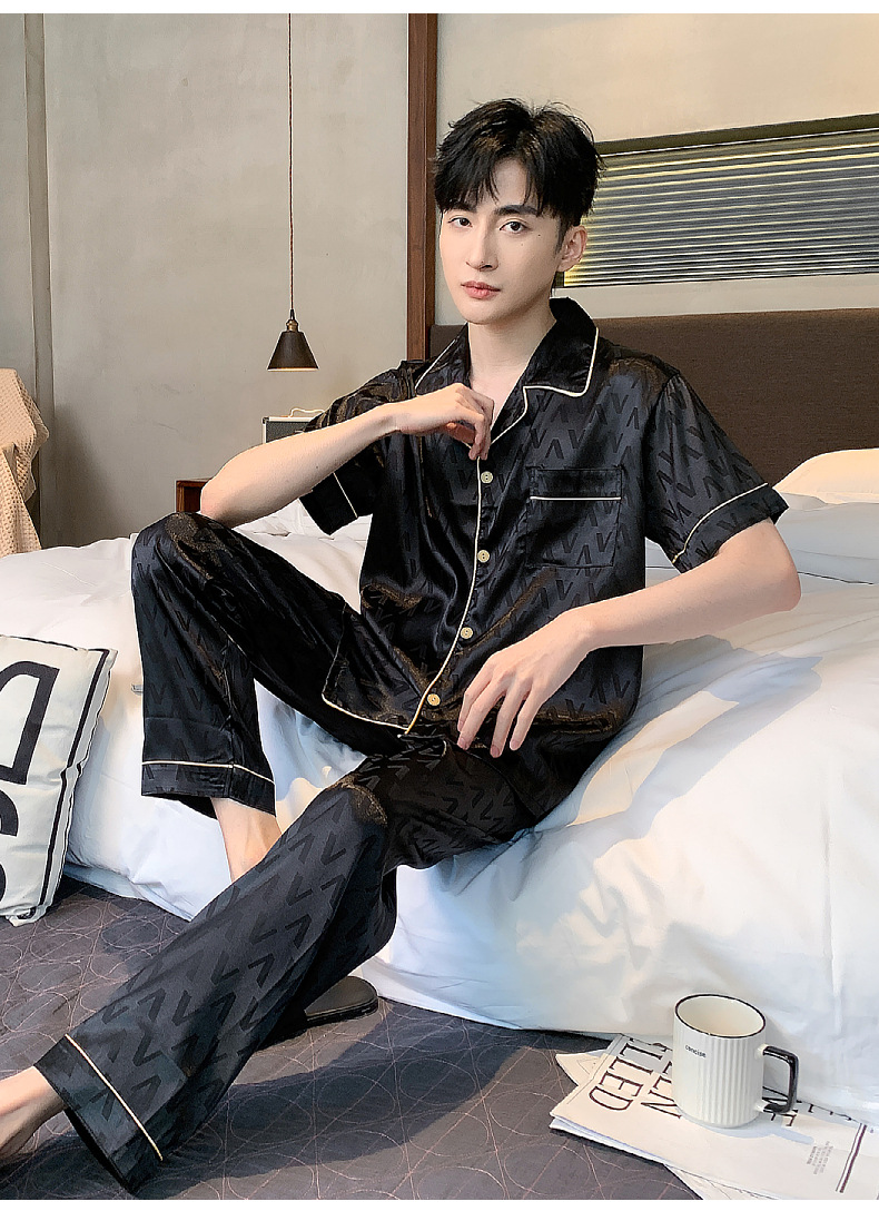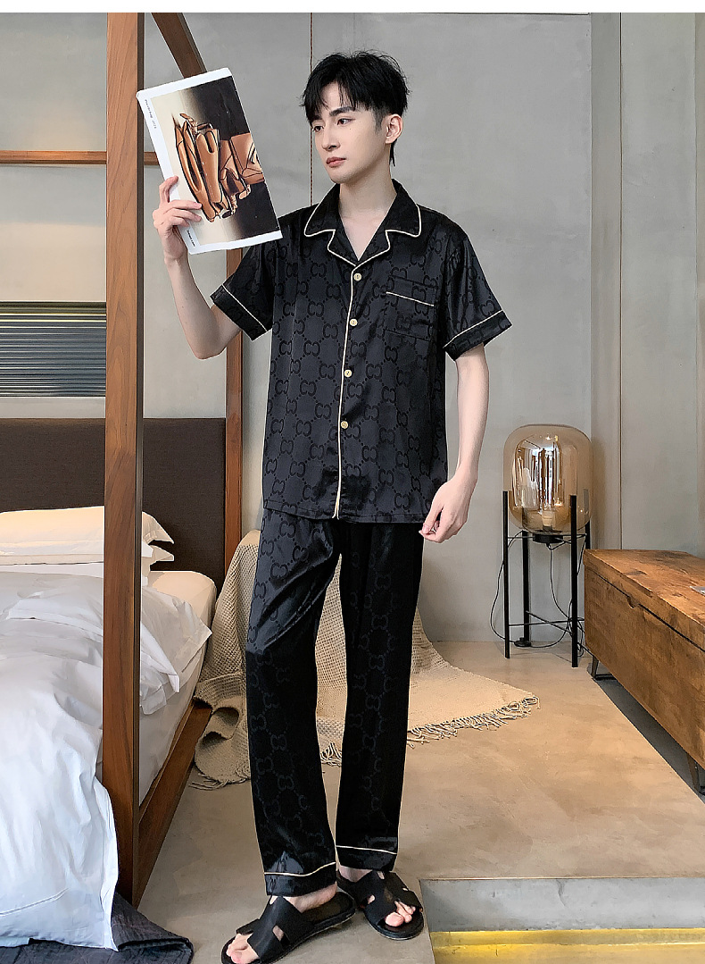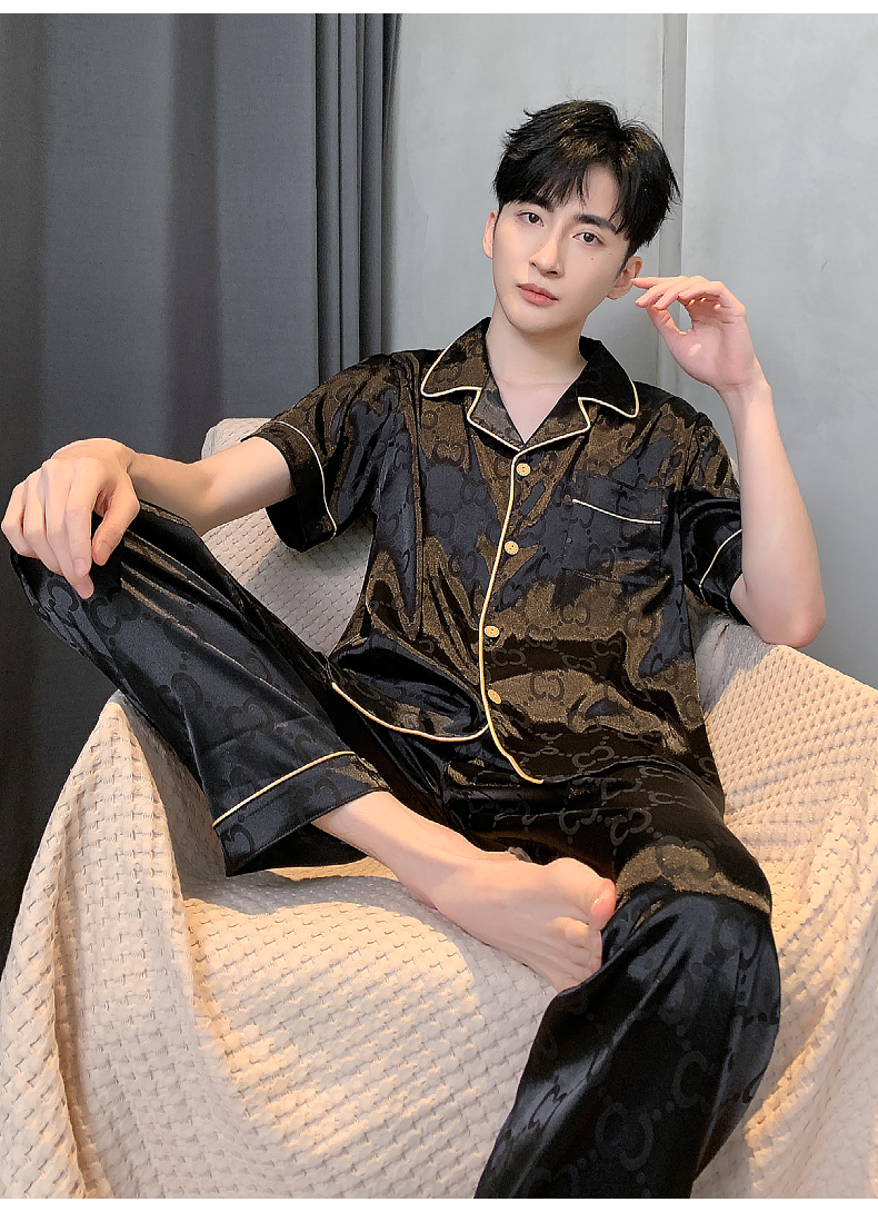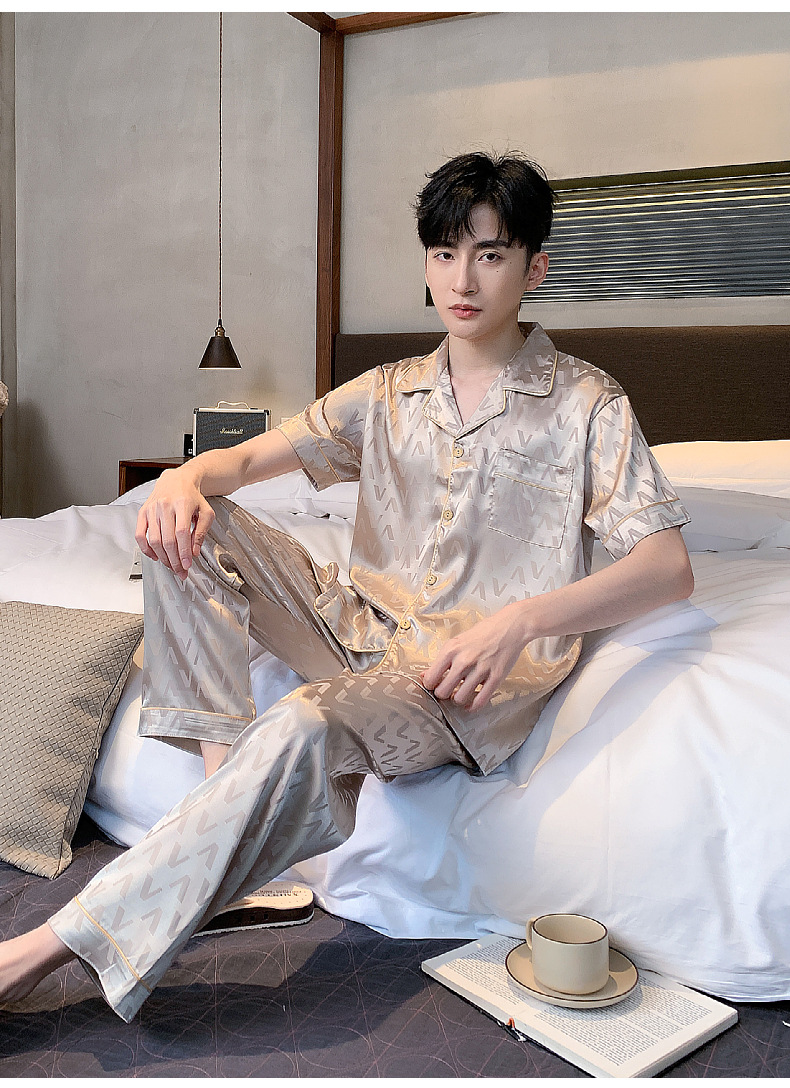 아이스 실크 잠옷 남성 여름 얇은 반팔 바지 시뮬레이션 실크 정장 중년 아빠 봄 여름 홈웨어 정장
