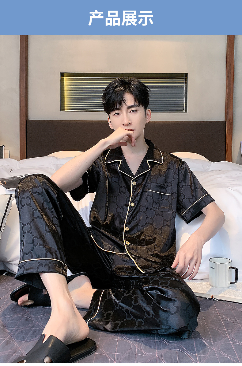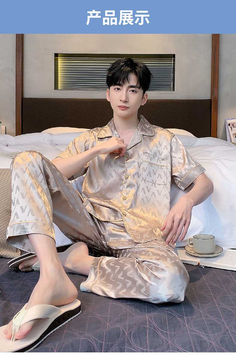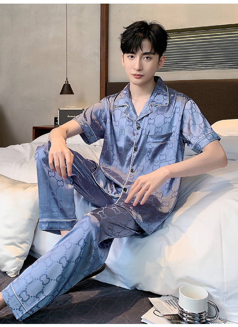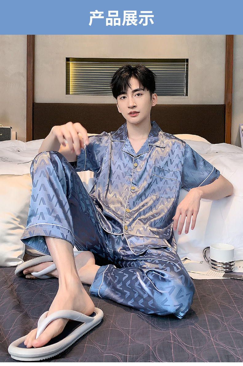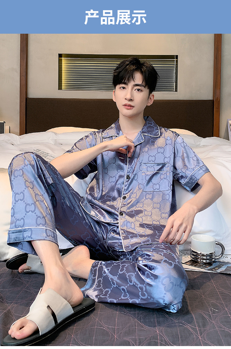 아이스 실크 잠옷 남성 여름 얇은 반팔 바지 시뮬레이션 실크 정장 중년 아빠 봄 여름 홈웨어 정장스토어 가기