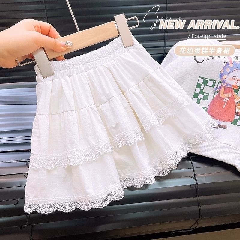 아동 스커트 2025 봄 여름 신작 레이스 케이크 스커트 소녀 주름 스커트 안전 바지가있는 짧은 스커트