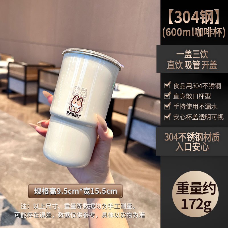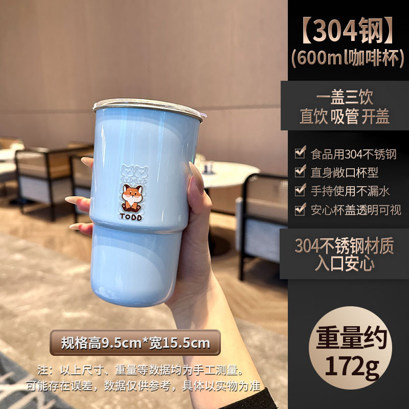 304 스테인레스 스틸 핸드 컵 뚜껑 누출 방지 커피 컵 더블 레이어 대용량 워킹 컵 휴대용 자동차 워터 컵스토어 가기