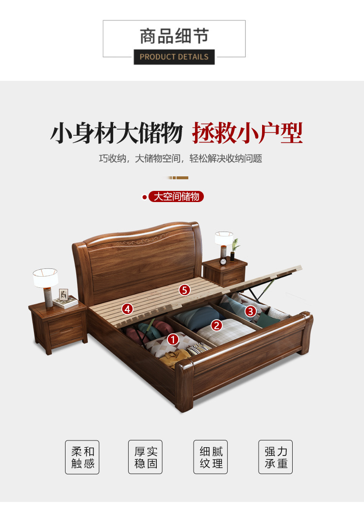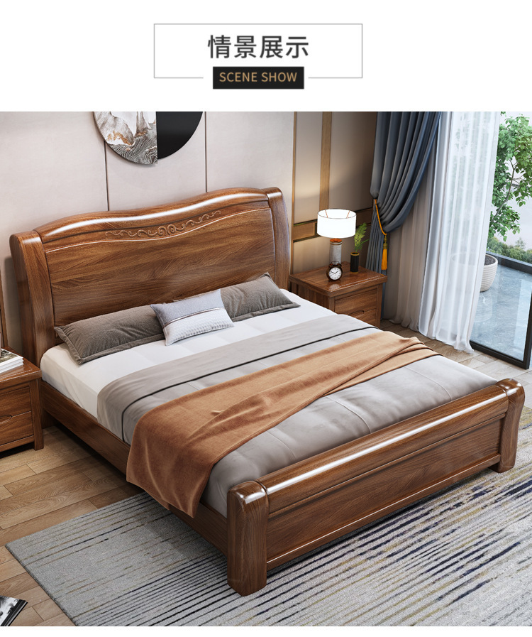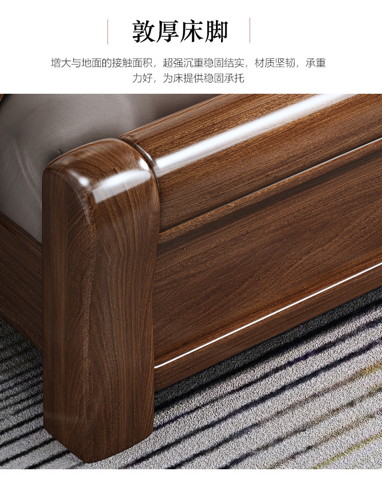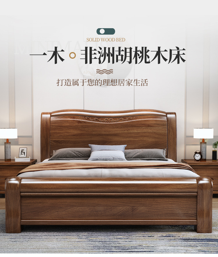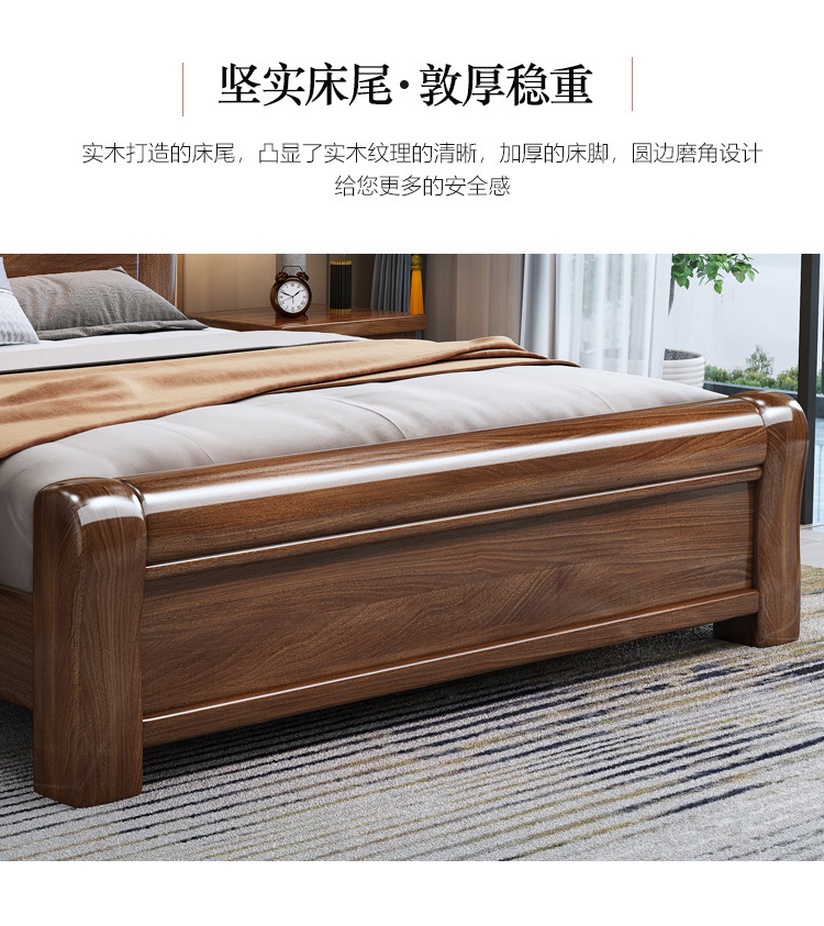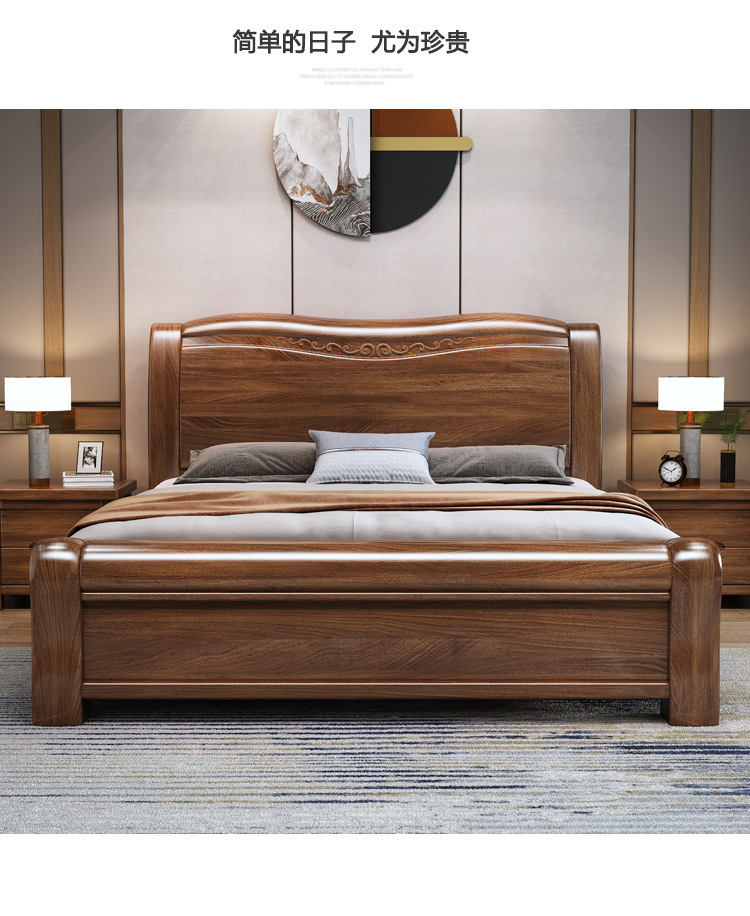 호두나무 새로운 중국 스타일 1.8m 마스터 침실 침대 현대적인 단순 1.5M 더블 원목 침대 싱글 하이 박스 수납 침대스토어 가기
