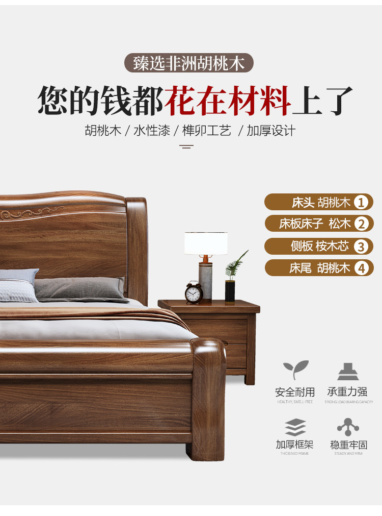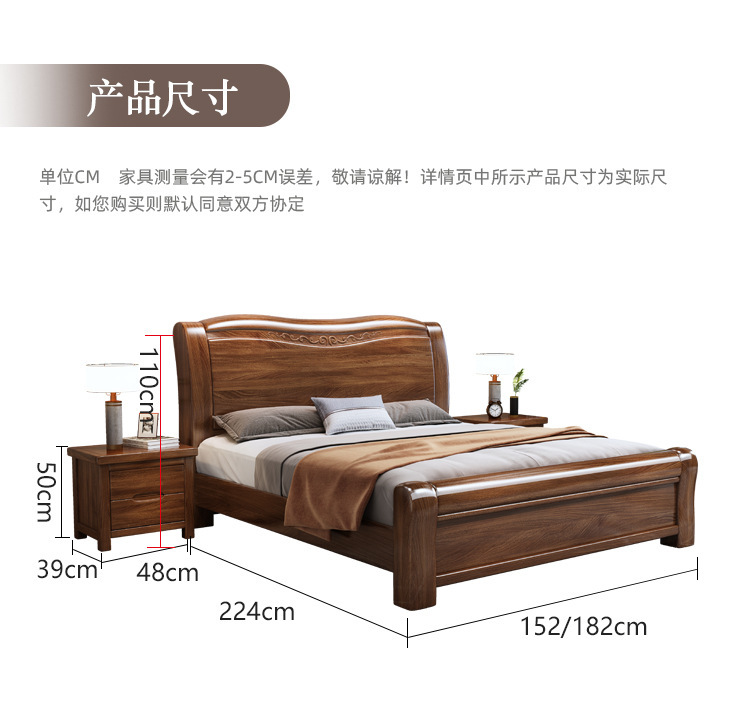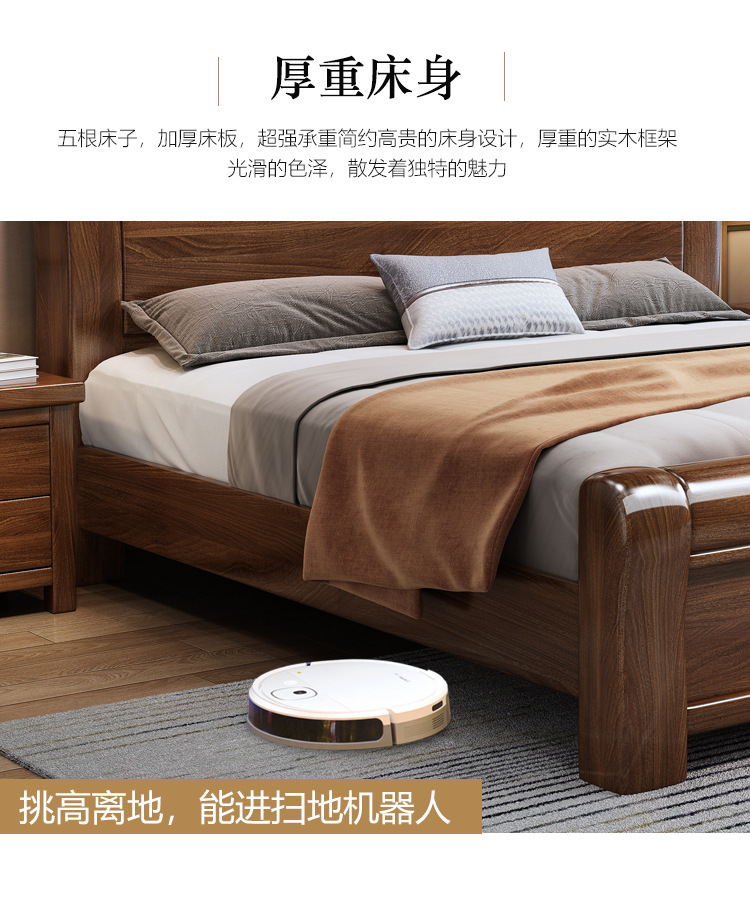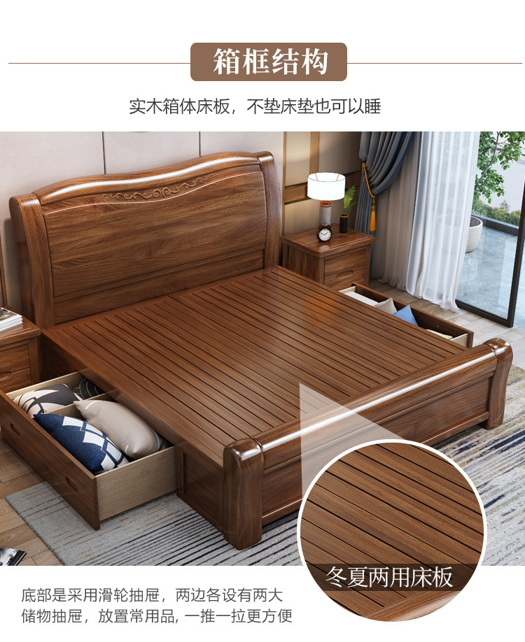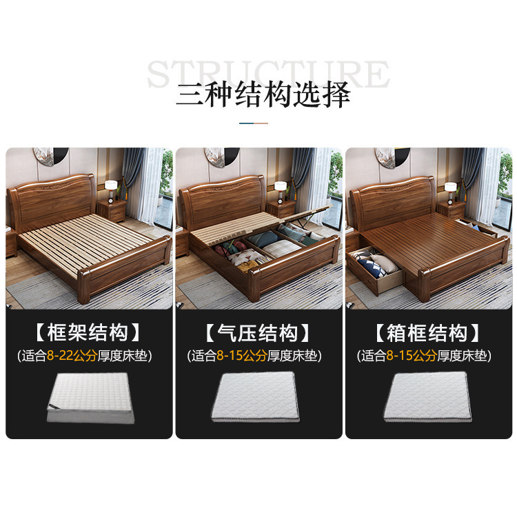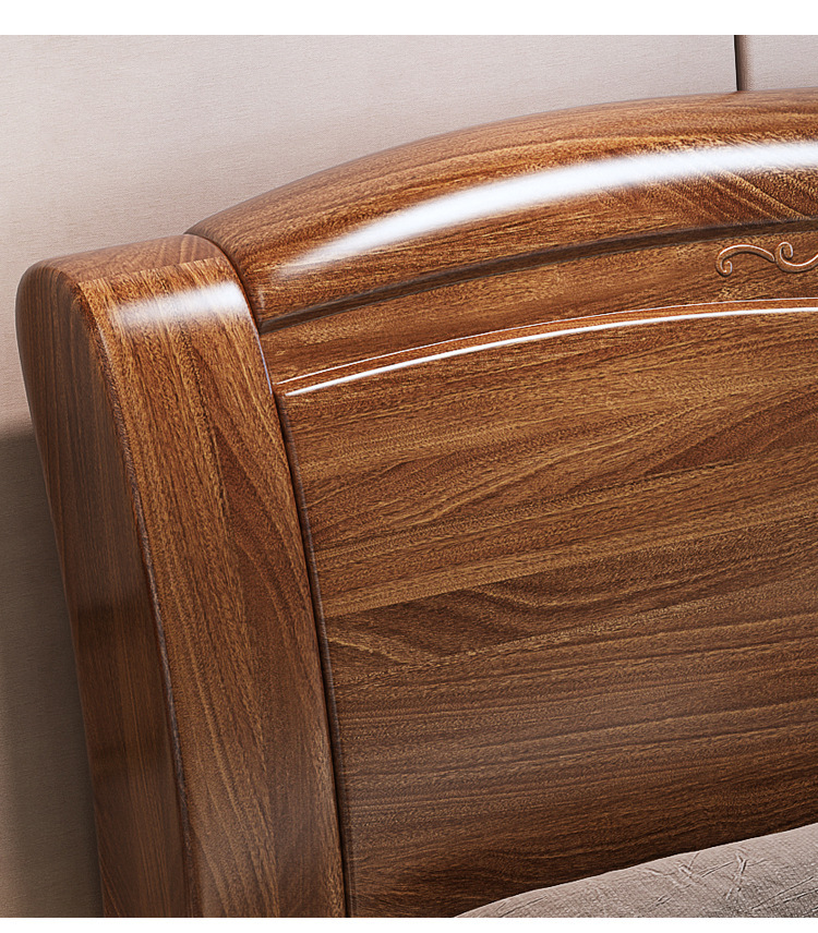 호두나무 새로운 중국 스타일 1.8m 마스터 침실 침대 현대적인 단순 1.5M 더블 원목 침대 싱글 하이 박스 수납 침대스토어 가기