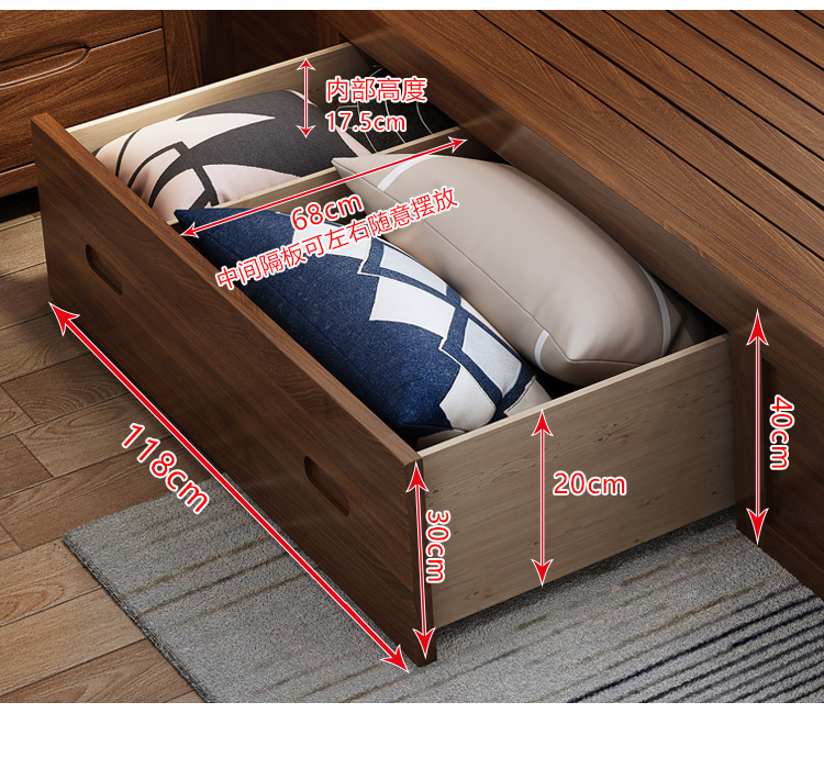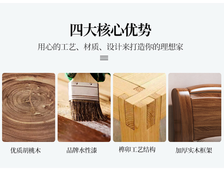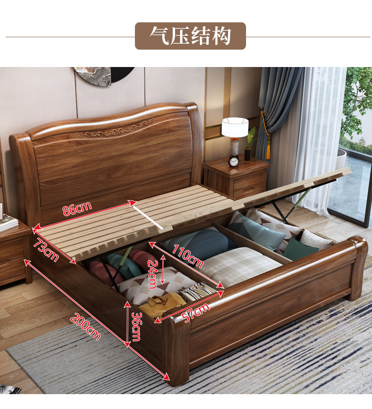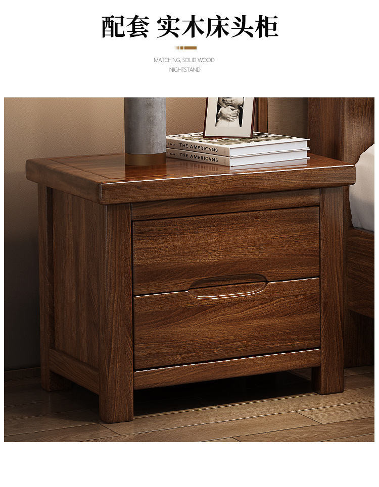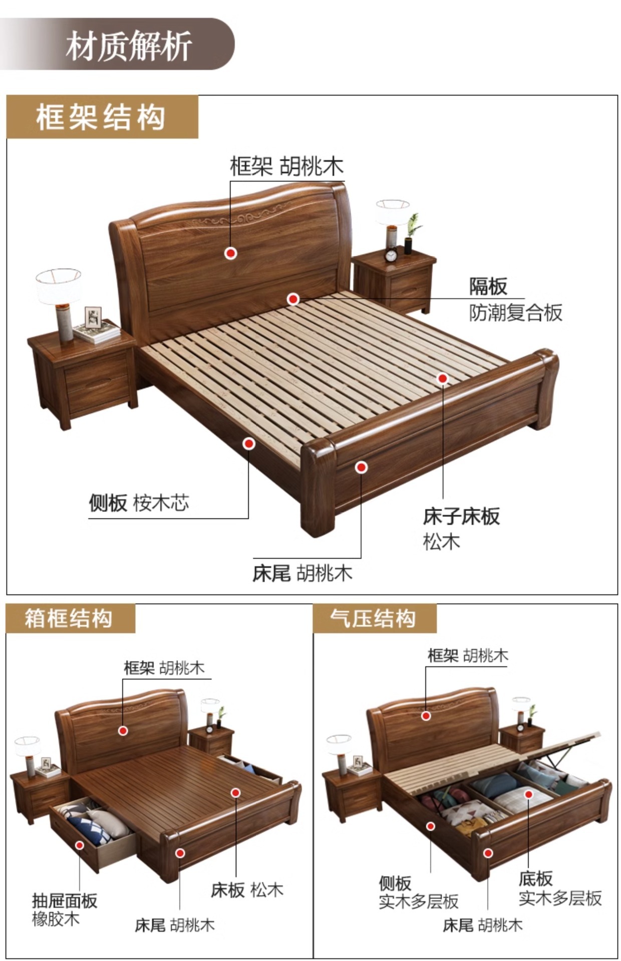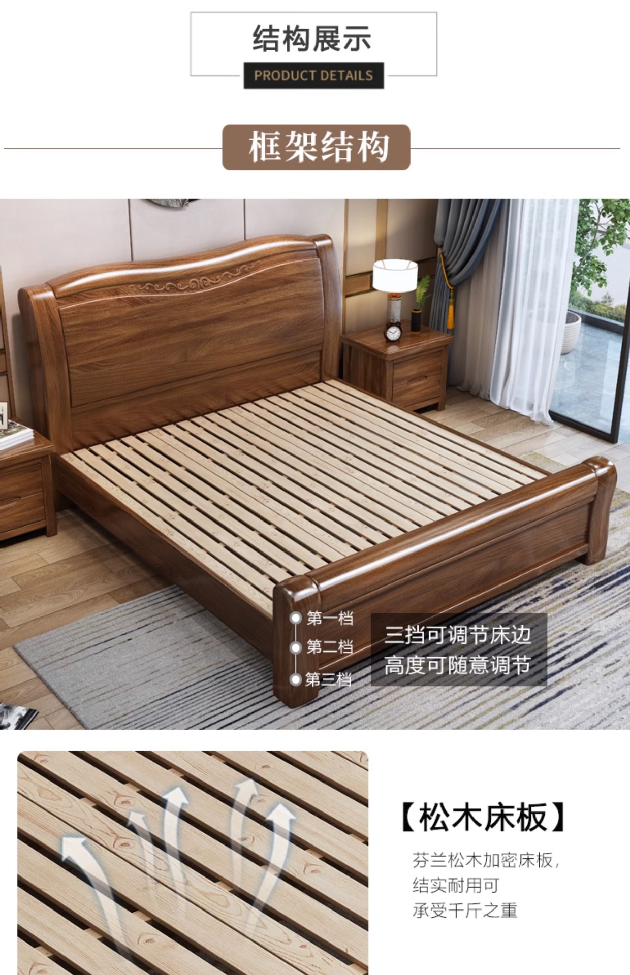 호두나무 새로운 중국 스타일 1.8m 마스터 침실 침대 현대적인 단순 1.5M 더블 원목 침대 싱글 하이 박스 수납 침대스토어 가기