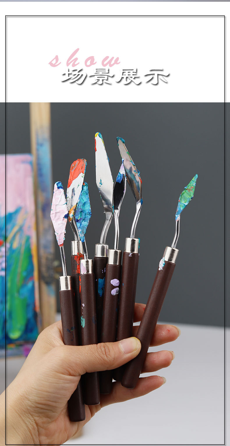 페인트 마호가니 손잡이 오일 페인트 칼 안료 스크레이퍼 아크릴 구아슈 안료 도구 나무 막대 플랫 헤드 칼 미술 용품스토어 가기