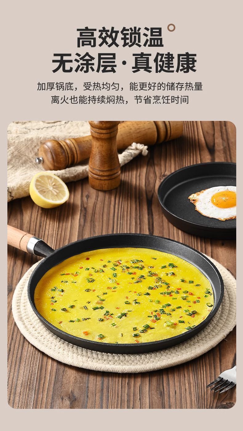 새로운 주철 프라이팬 팬 아이언 팬 두꺼운 팬 스테이크 비 스틱 팬 튀긴 계란 프라이드 팬 가정용 팬케이크 팬 도매