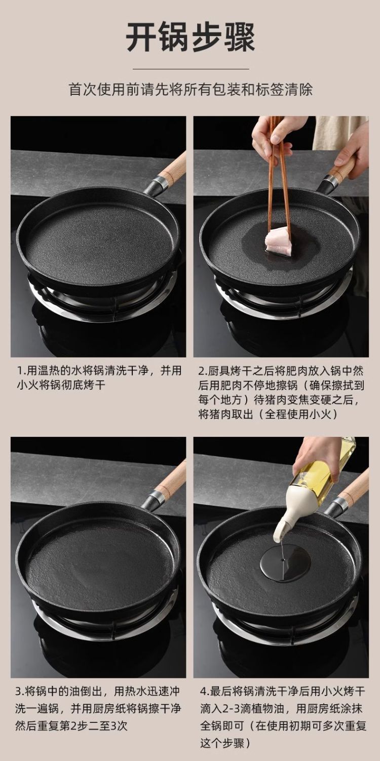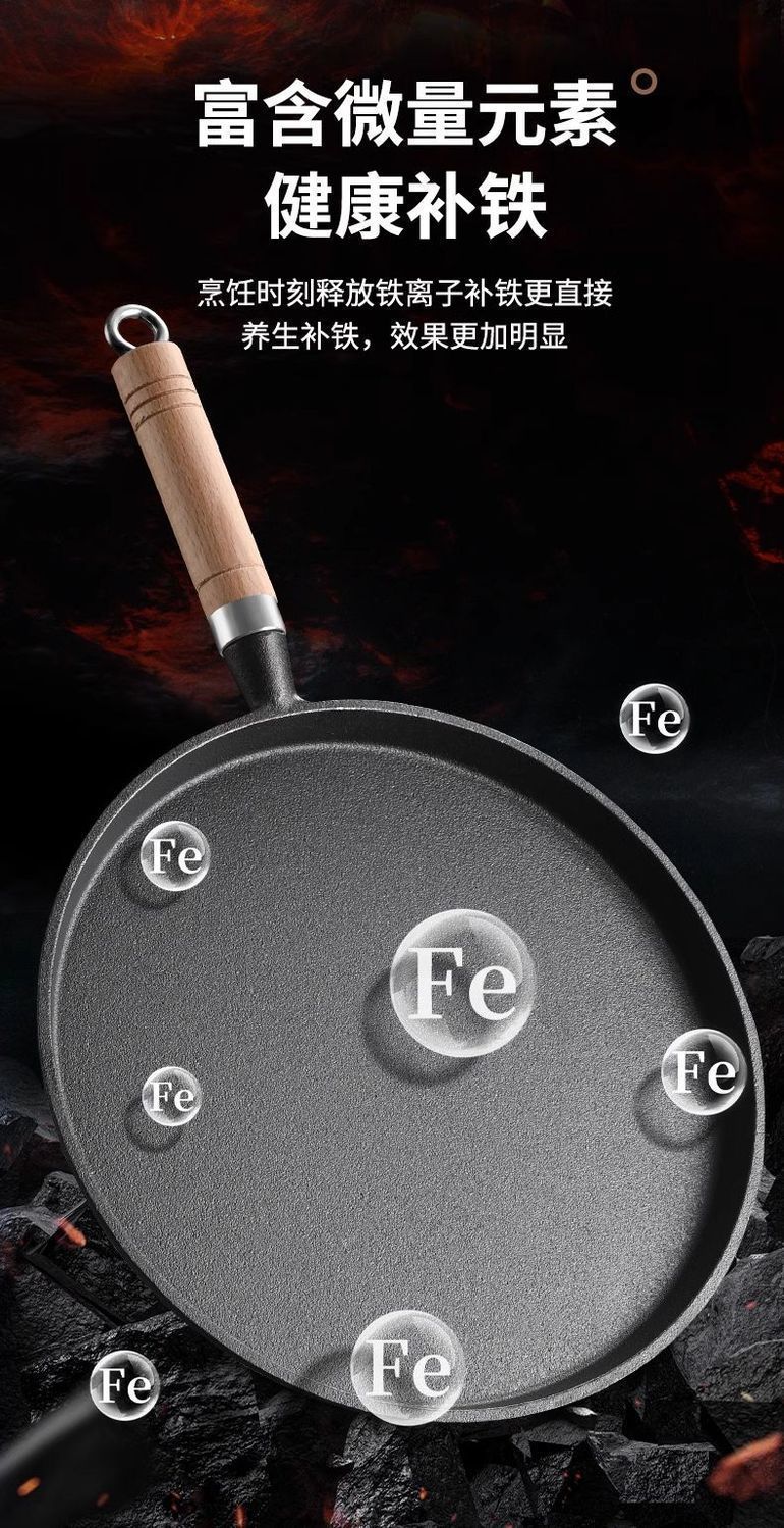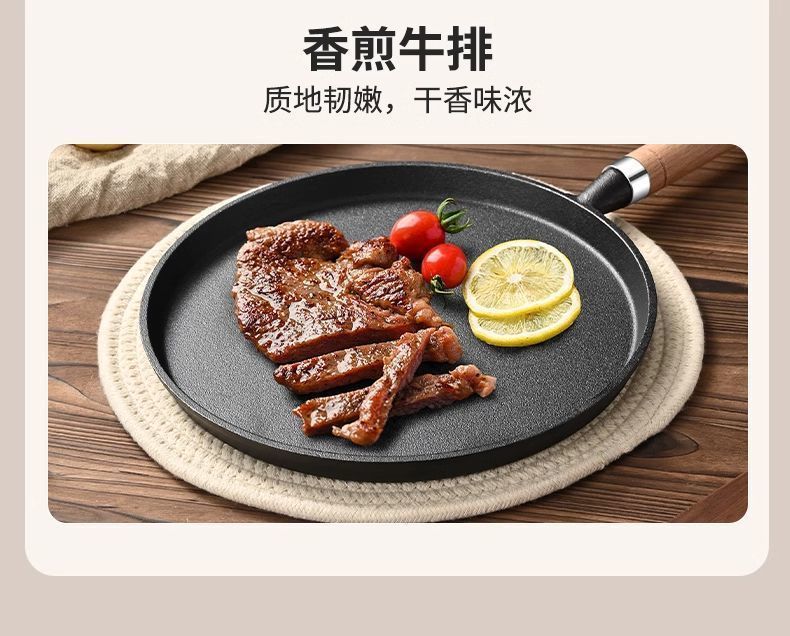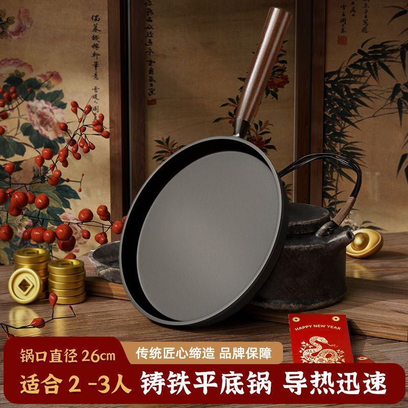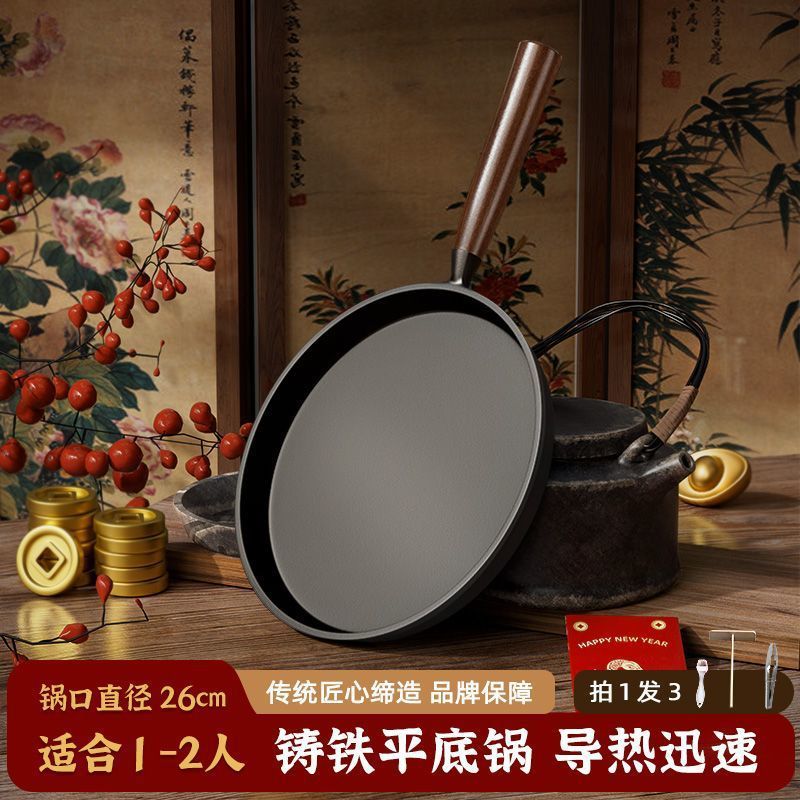 새로운 주철 프라이팬 팬 아이언 팬 두꺼운 팬 스테이크 비 스틱 팬 튀긴 계란 프라이드 팬 가정용 팬케이크 팬 도매스토어 가기