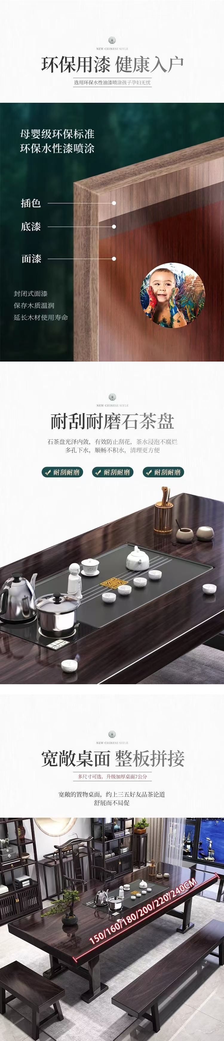새로운 중국 스타일의 단단한 나무 대형 보드 티 테이블과 의자 조합, 고급 사무실 티 테이블, 가정용 티 테이블, 티 테이블, 일체형 세트