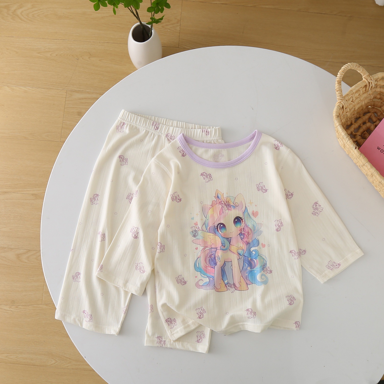 어린이 의류 여성 여름 세트 여름 얇은 옷 만화 인쇄 모달 면 잠옷 어린이 에어컨 옷 소년 잠옷
