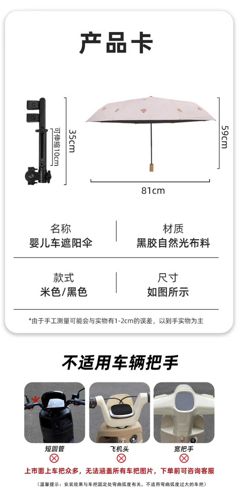 전기 자동차 접히는 양산 우산 배터리 페달 오토바이 블랙 고무 선 스크린 UV 우산 브래킷
