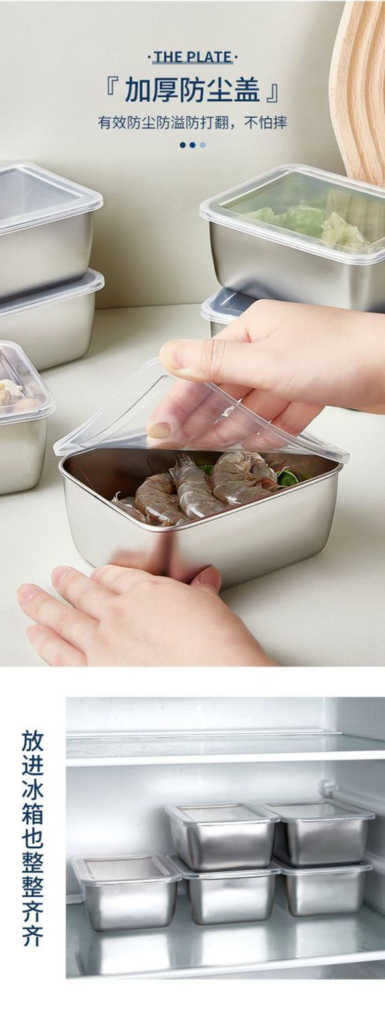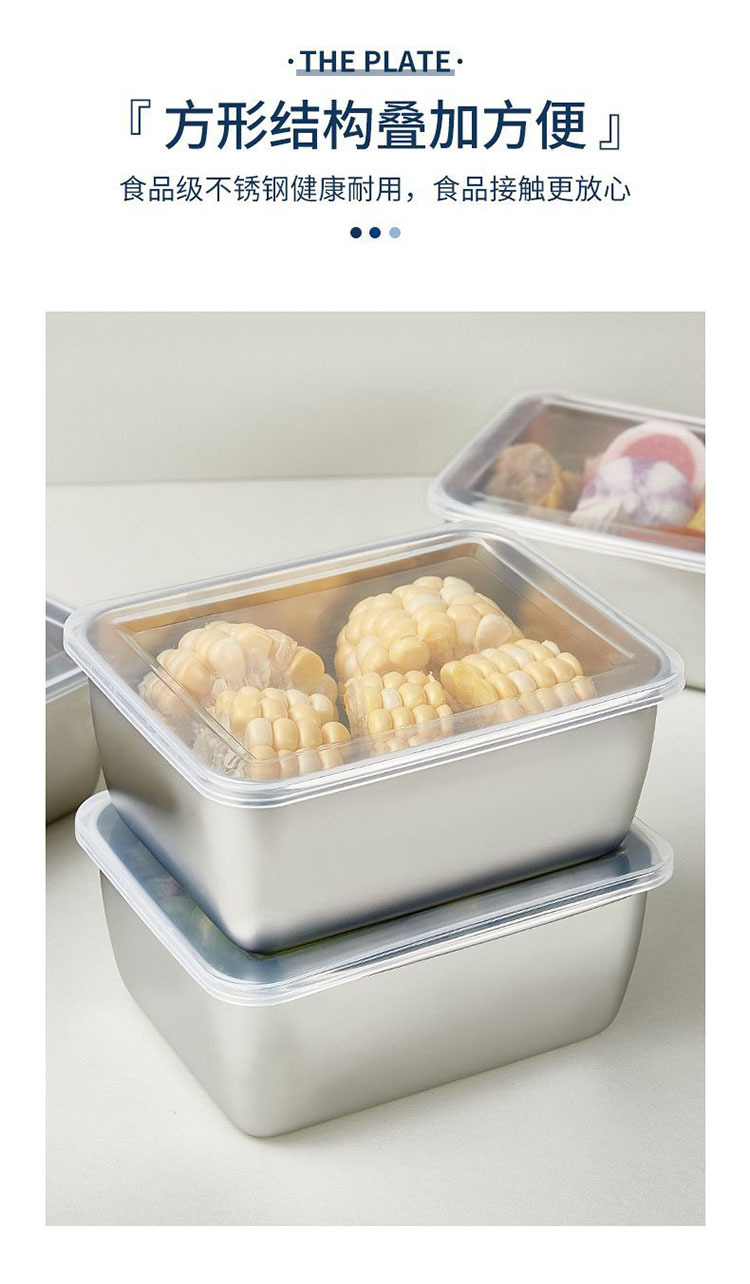 스테인리스 사각 접시, 뚜껑이 있는 평평한 바닥 수건 접시, 차가운 접시, 반찬 접시, 직사각형 크리스퍼, 조리 준비 보관함스토어 가기