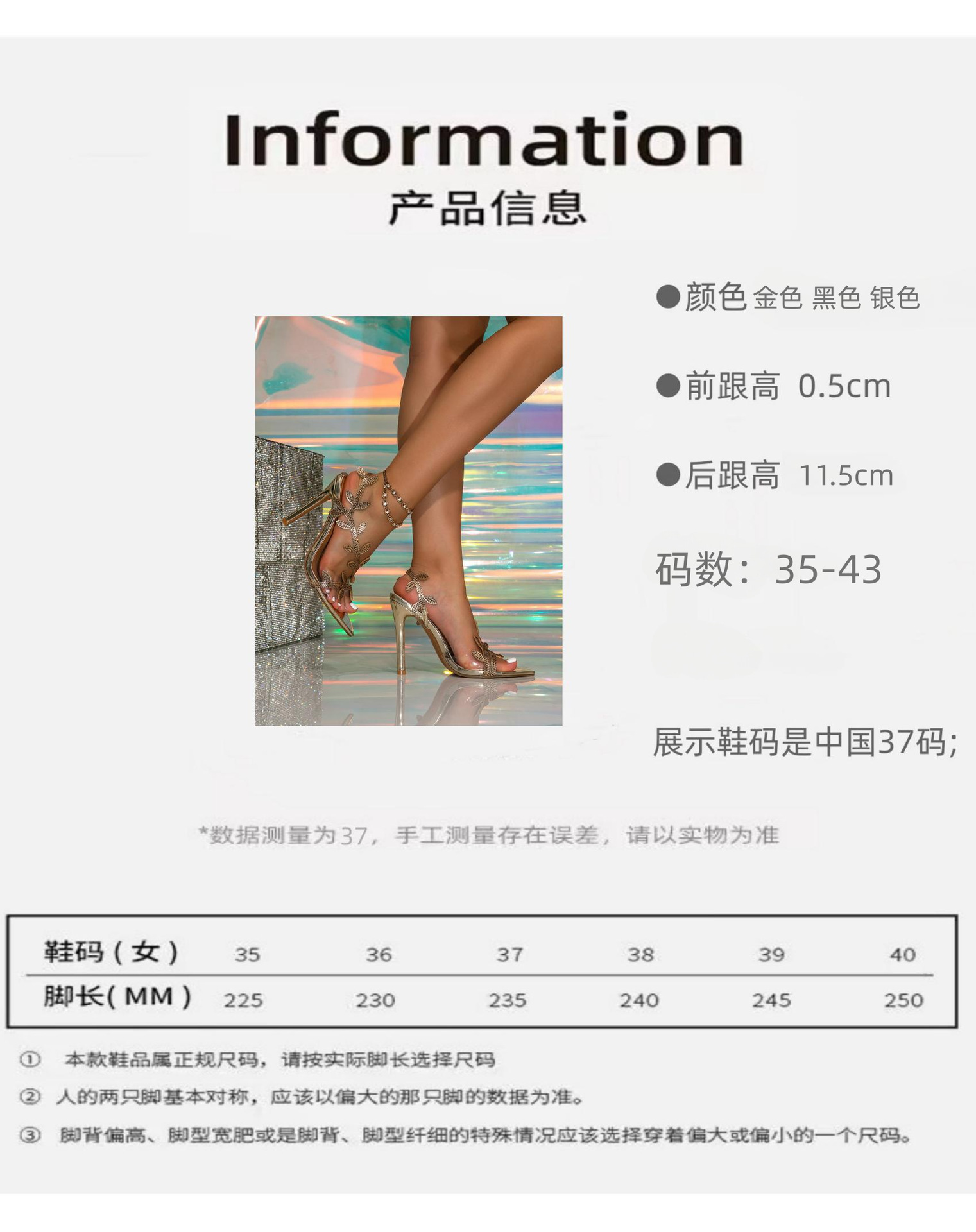 유럽과 미국의 뾰족한 모조 다이아몬드 잎 스틸레토 샌들 2025 여름 새로운 기질 패션 크로스 보더 하이힐스토어 가기