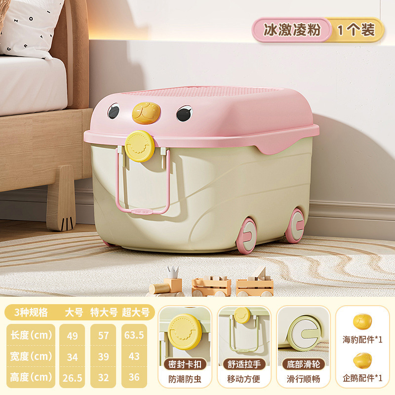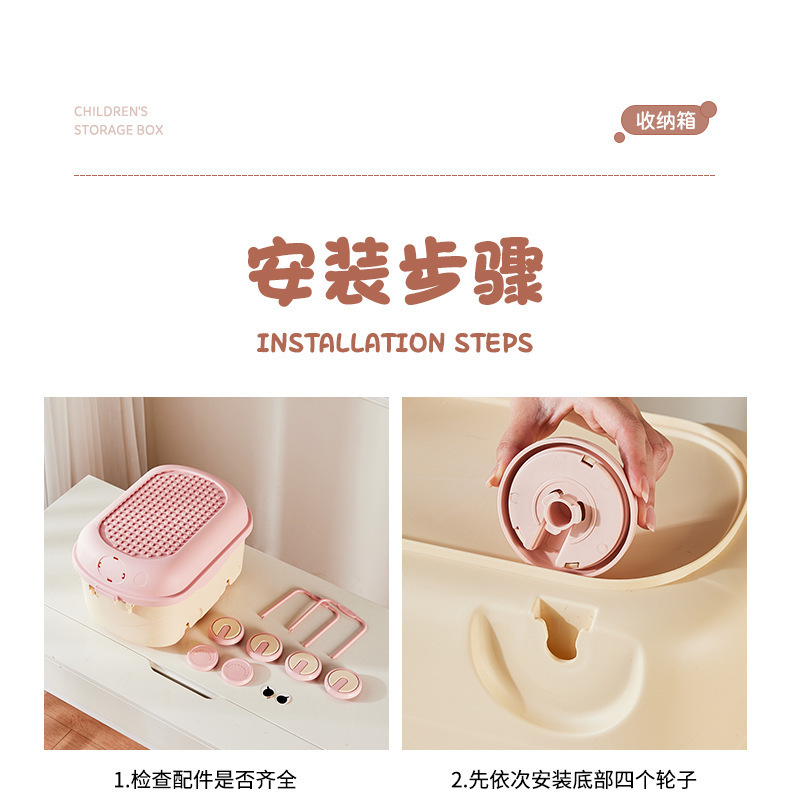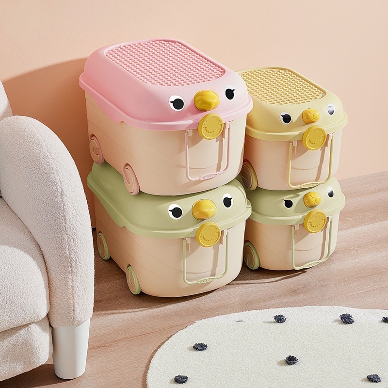 엄선된 어린이 장난감 보관 상자, 아기 옷, 간식 및 책 보관 상자, 도르래가 달린 손으로 당기는 만화 장난감 상자스토어 가기