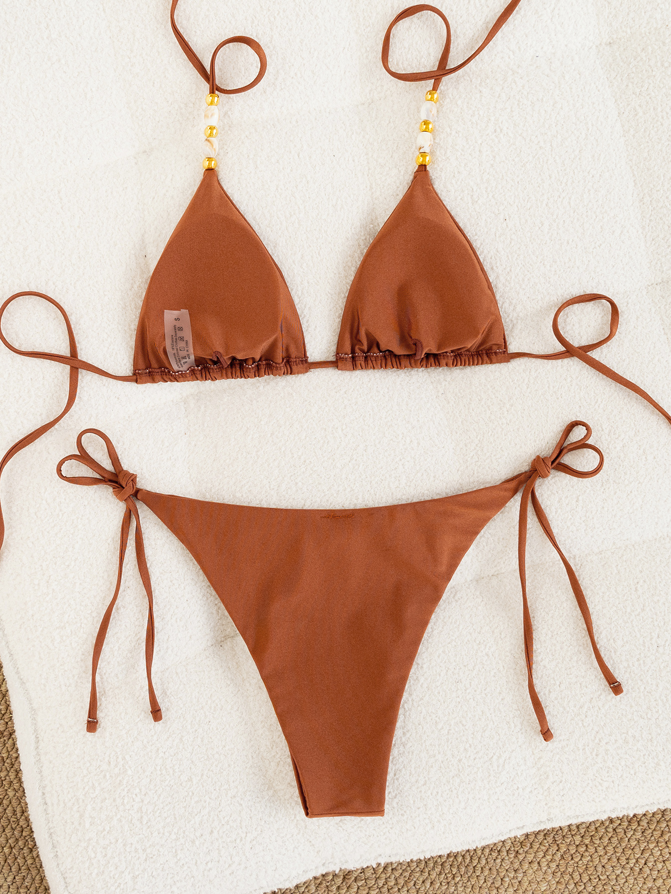 2026 신상품 크로스보더 아마존 비키니 단색 비즈 끈 섹시한 분리형 비키니 수영복 여성용