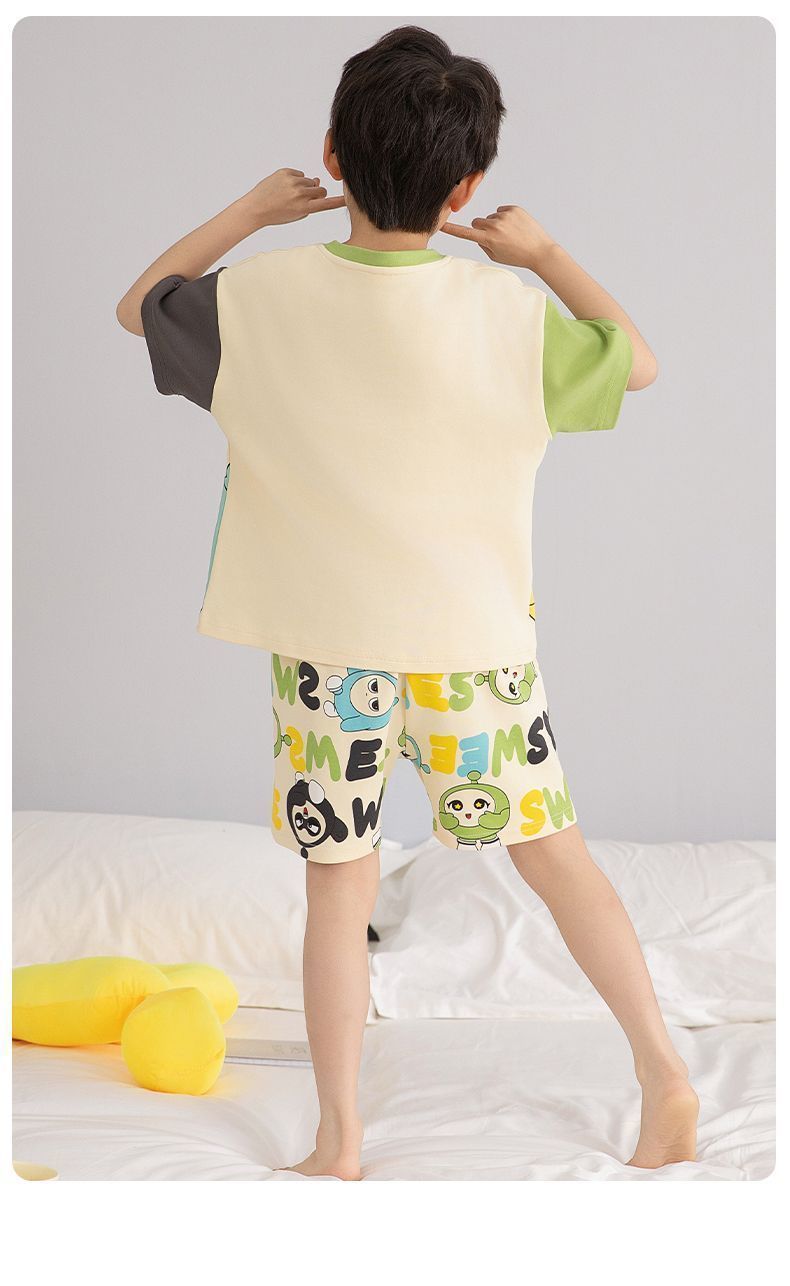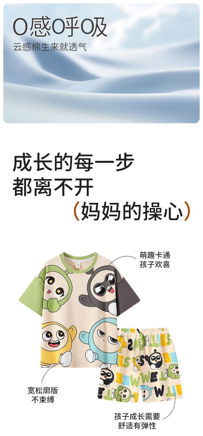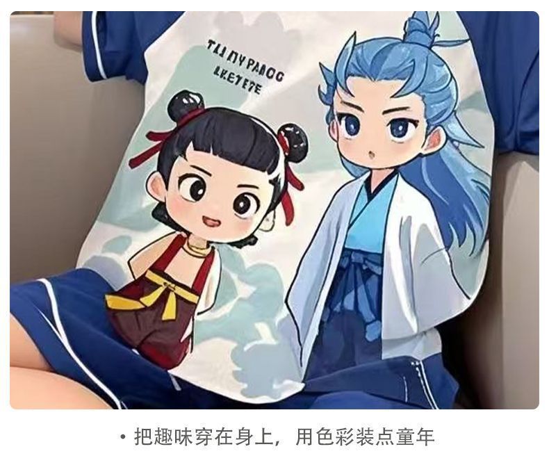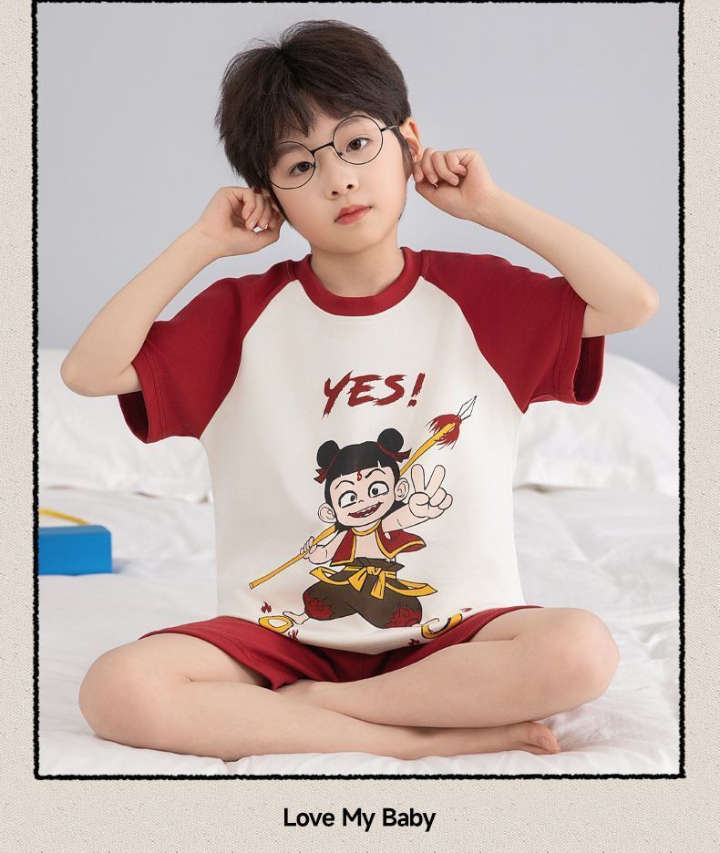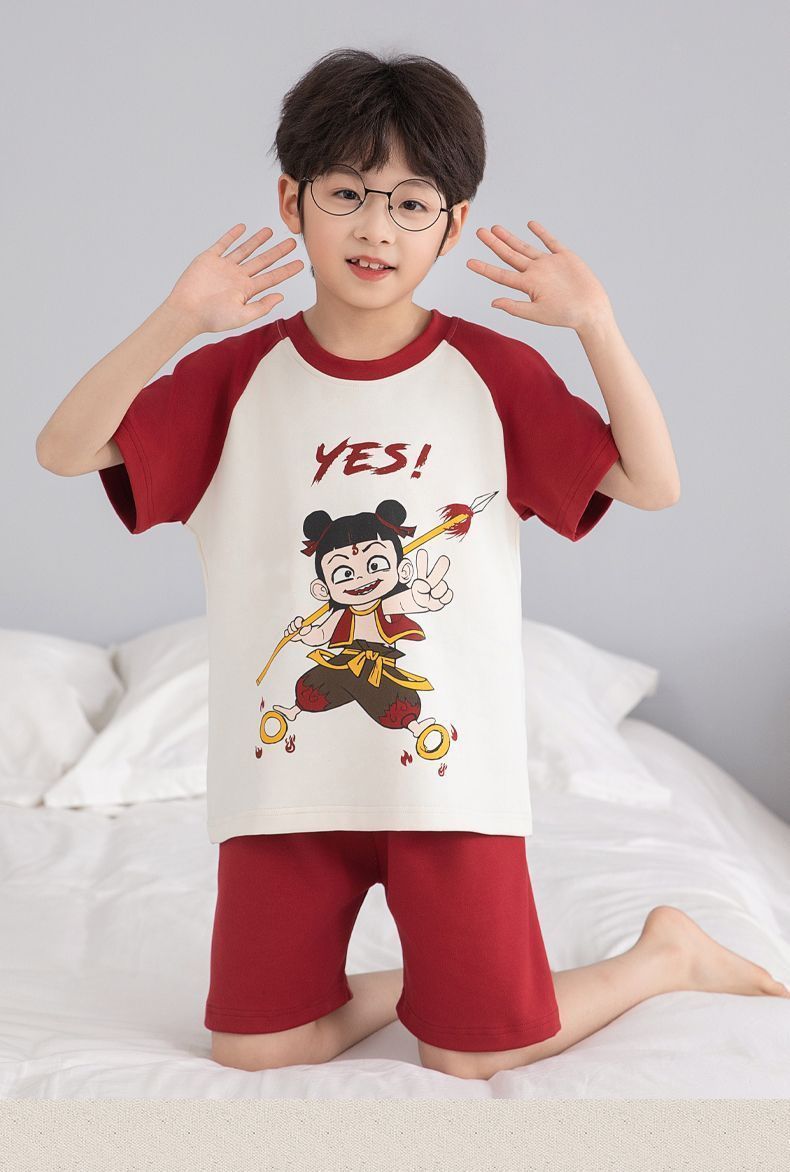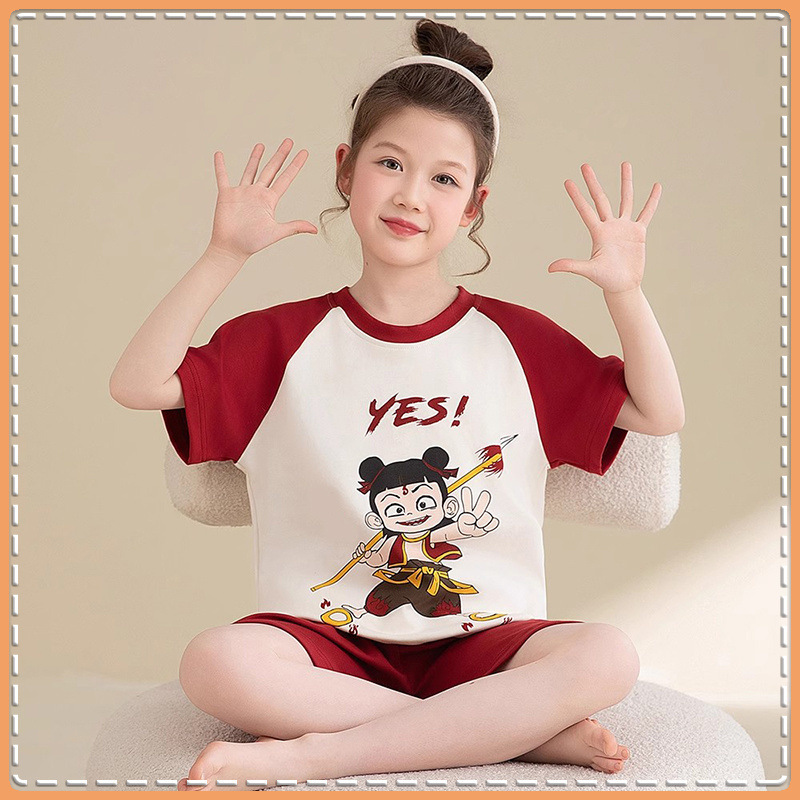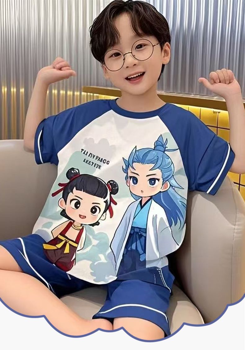 Nezha 2025 새로운 어린이 잠옷 소년 만화 울트라 맨 반팔 반바지 정장 남성 가정 의류 부드러운스토어 가기