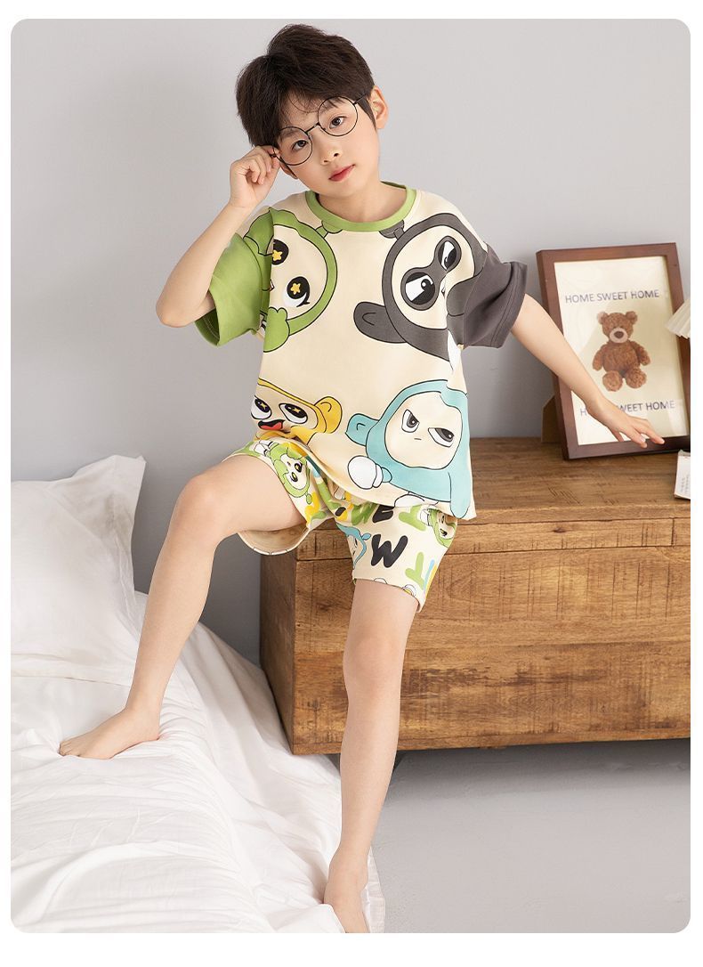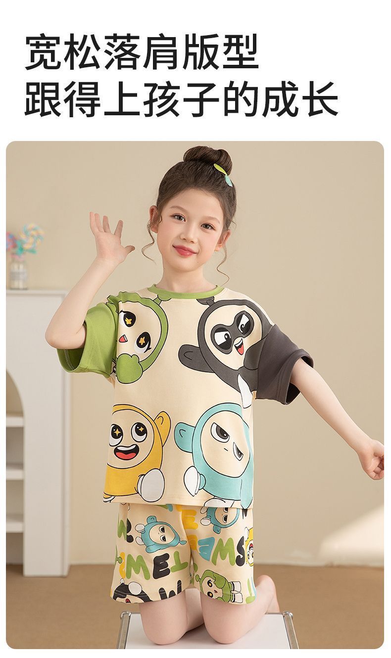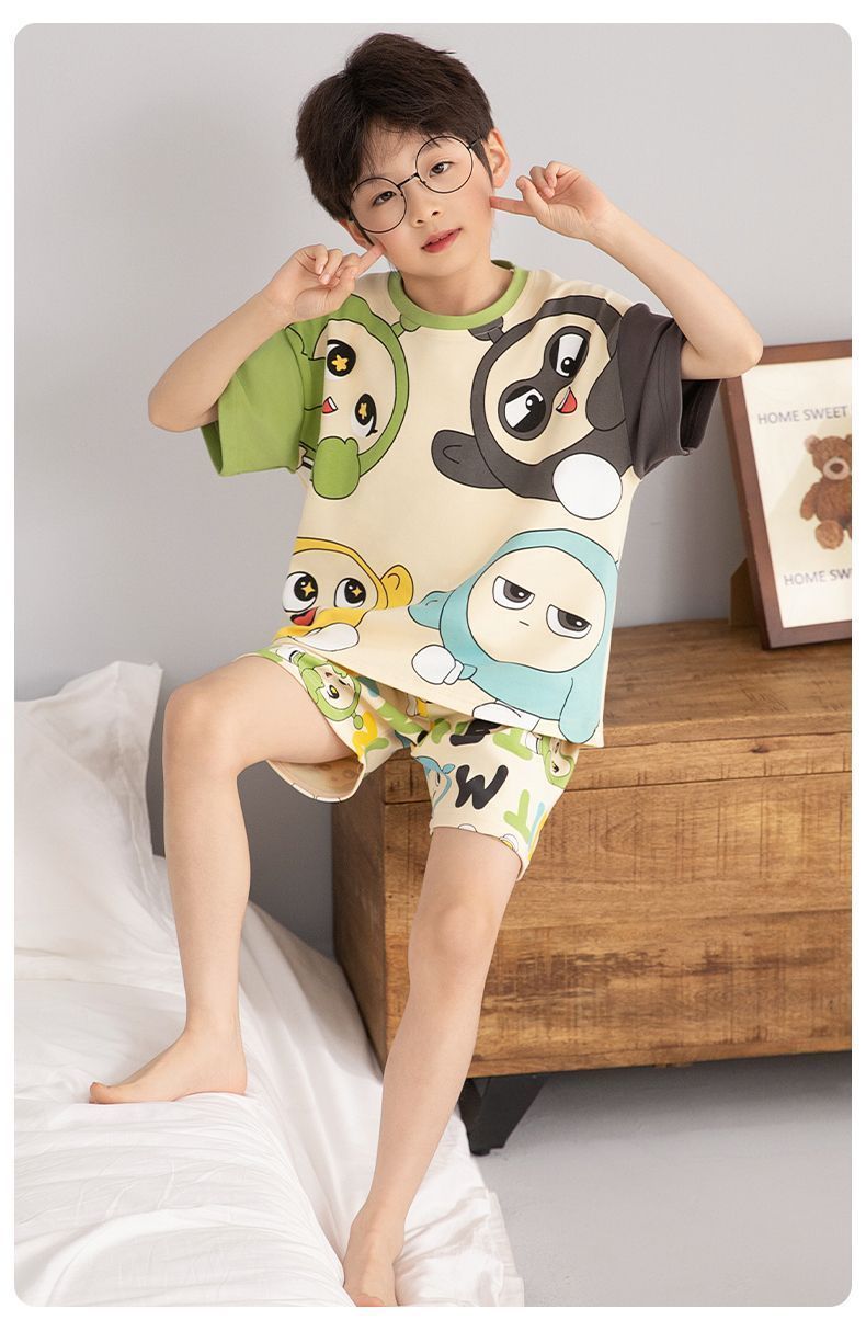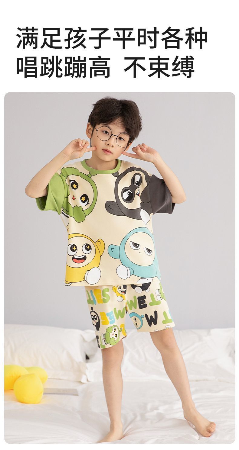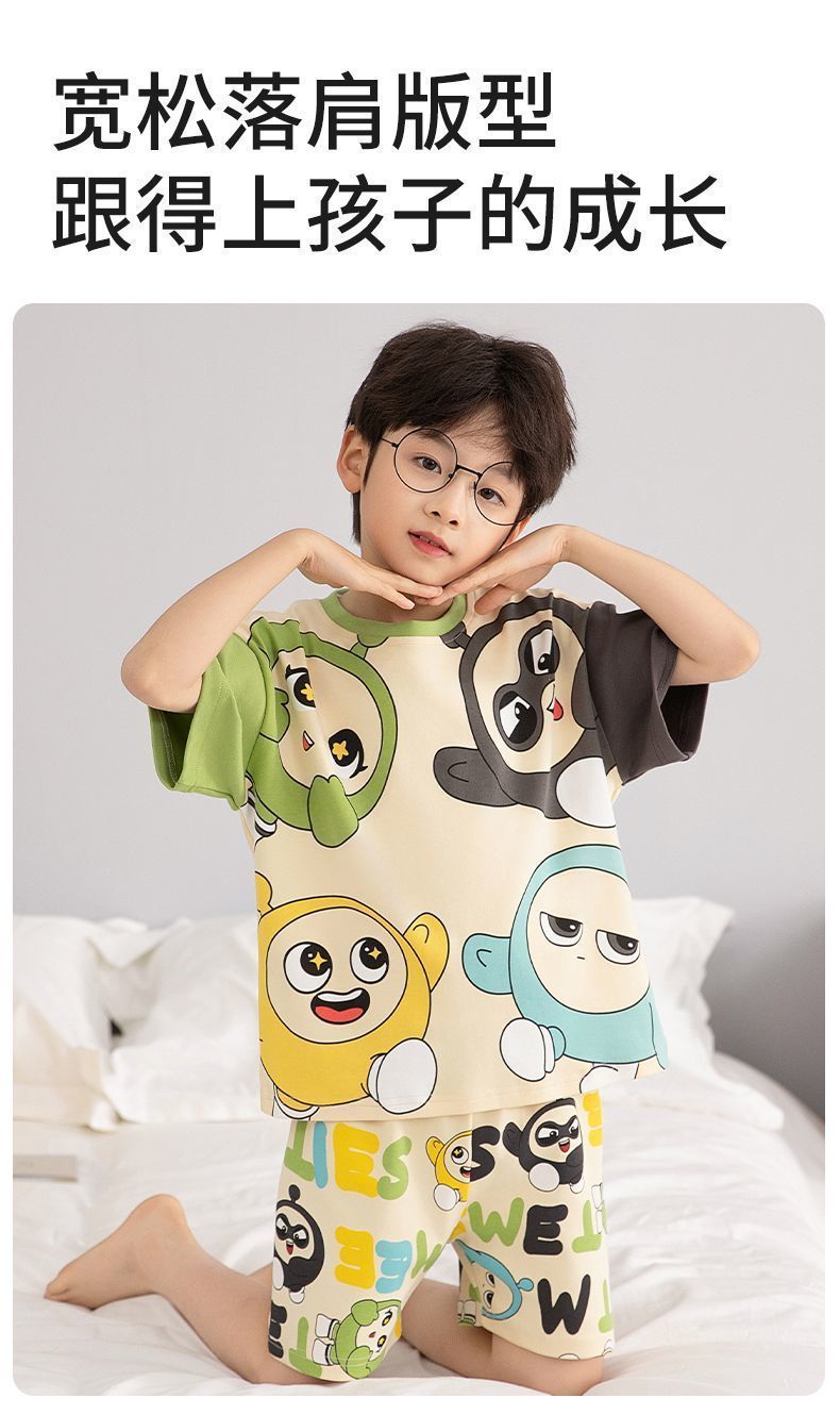 Nezha 2025 새로운 어린이 잠옷 소년 만화 울트라 맨 반팔 반바지 정장 남성 가정 의류 부드러운스토어 가기